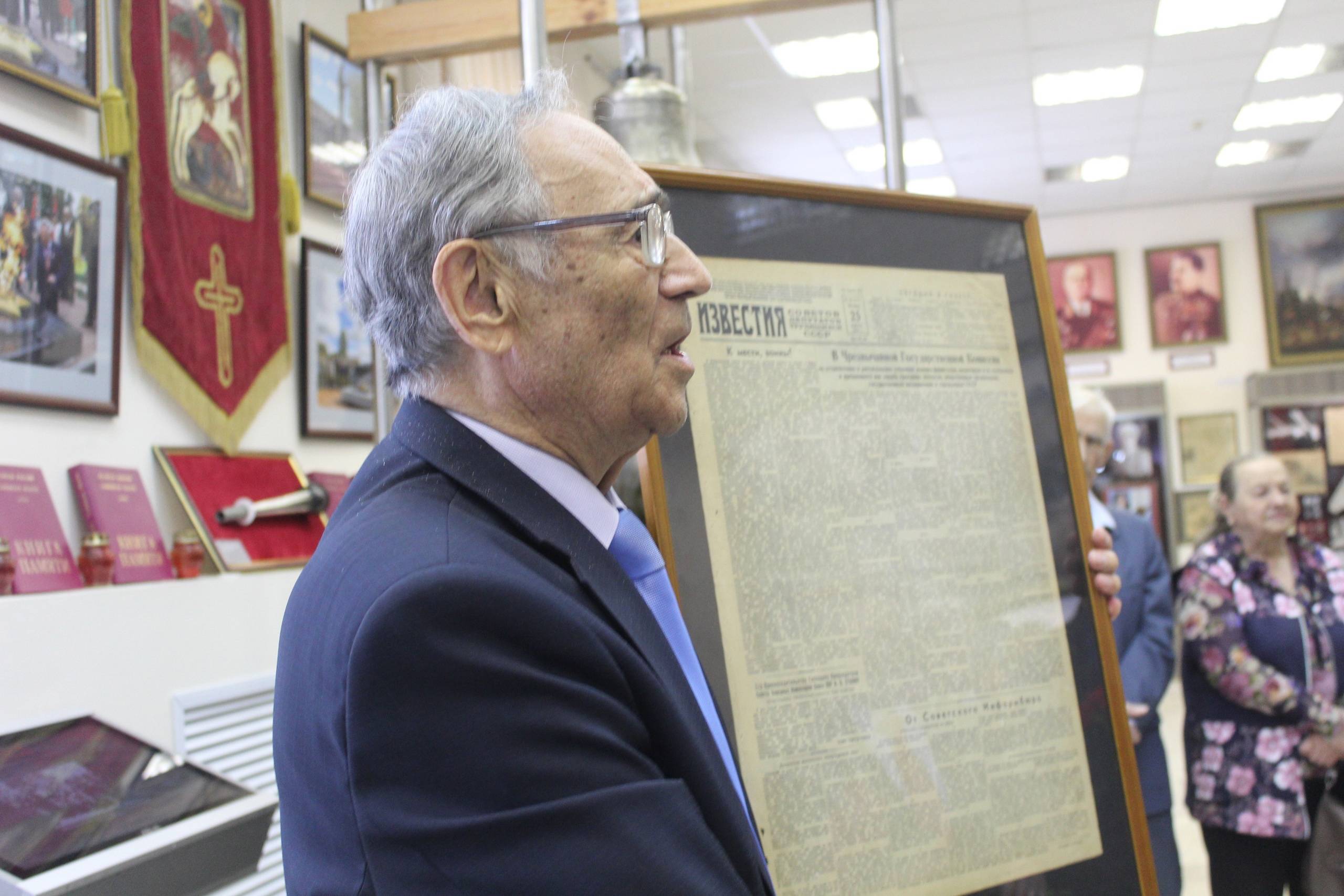 Председатель Совета регионального отделения РВИО, руководитель Музейно-выставочного центра И.А. Николаев продемонстрировал присутствующим подлинный экземпляр газеты 1942 года с указом Президиума Верховного Совета СССР от 2 ноября 1942 года о создании Чрезвычайной государственной комиссии по установлению и расследованию злодеяний немецко-фашистских захватчиков и их сообщников и причинённого ими ущерба гражданам, колхозам, общественным организациям, государственным предприятиям и учреждениям СССР.