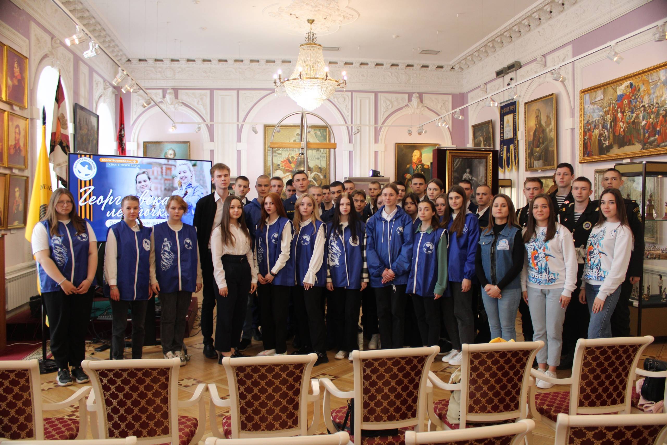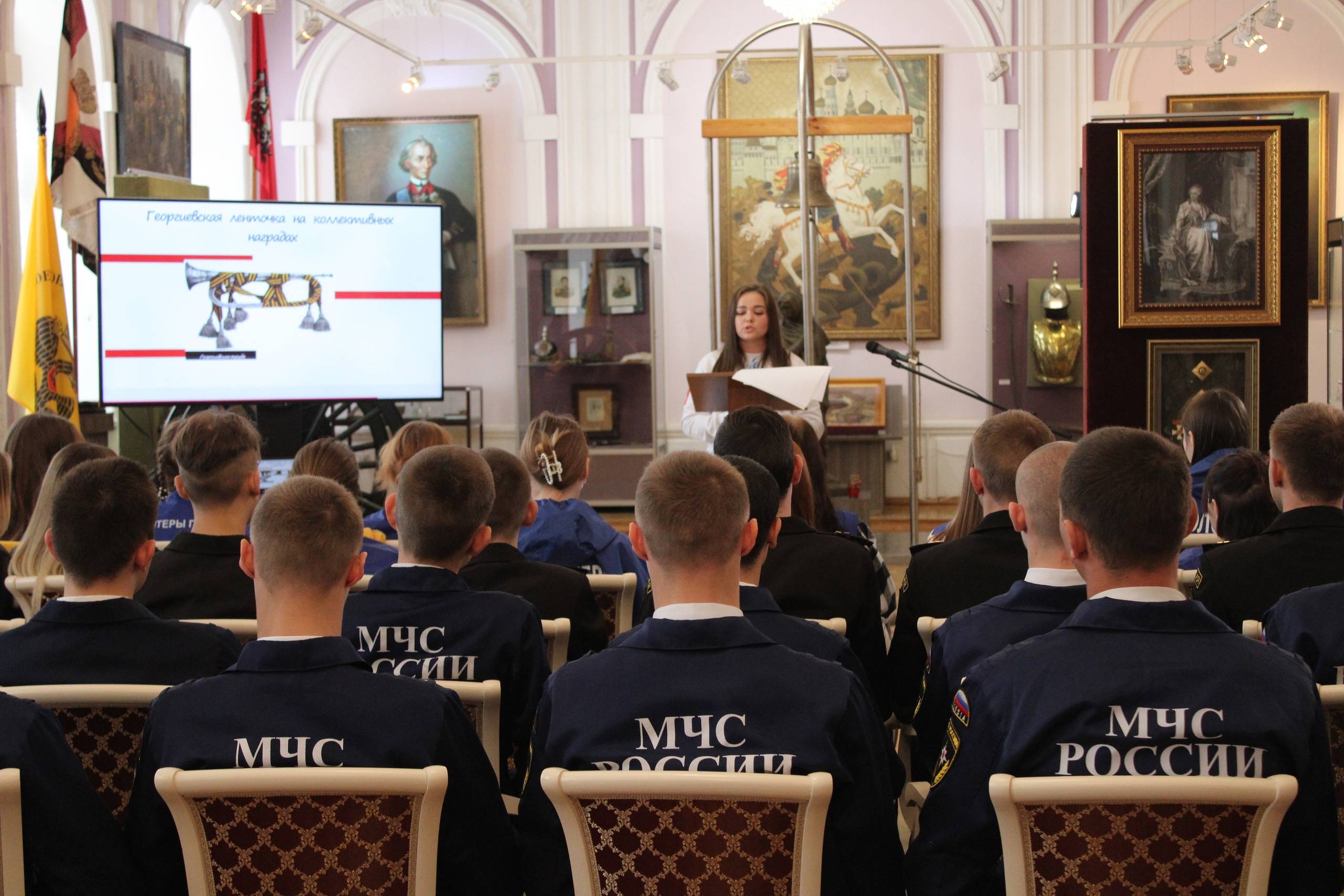 На открытии для гостей приготовили экспозицию, посвящённую Георгиевским наградам нашей страны, а также презентацию об истории Георгиевской ленты.