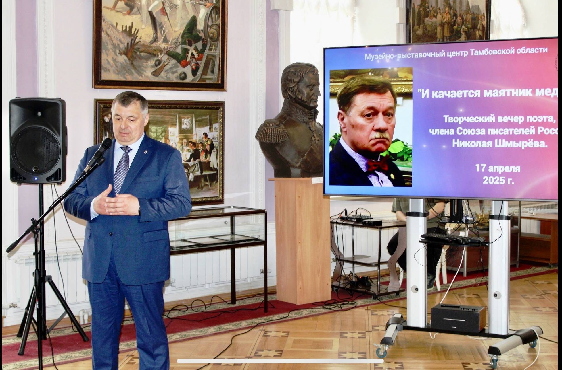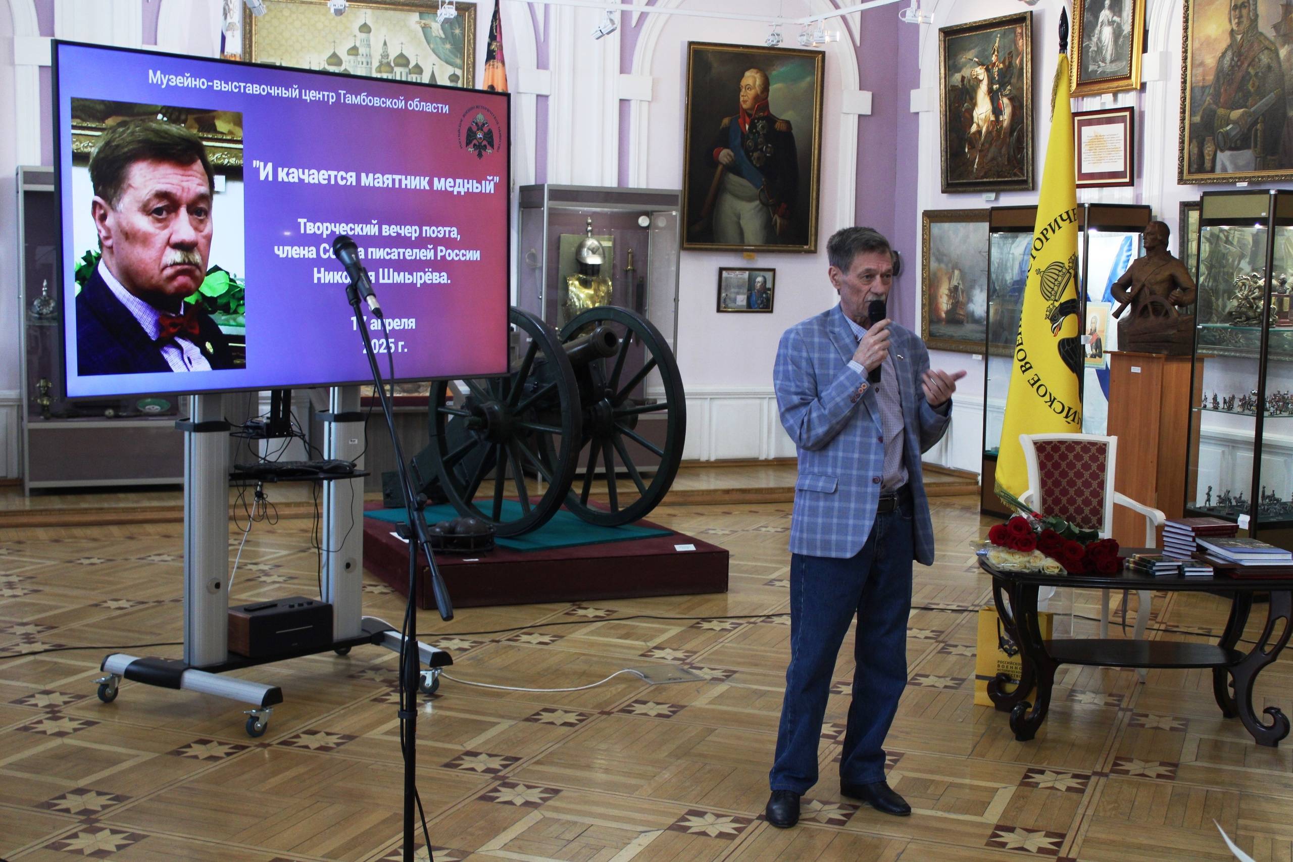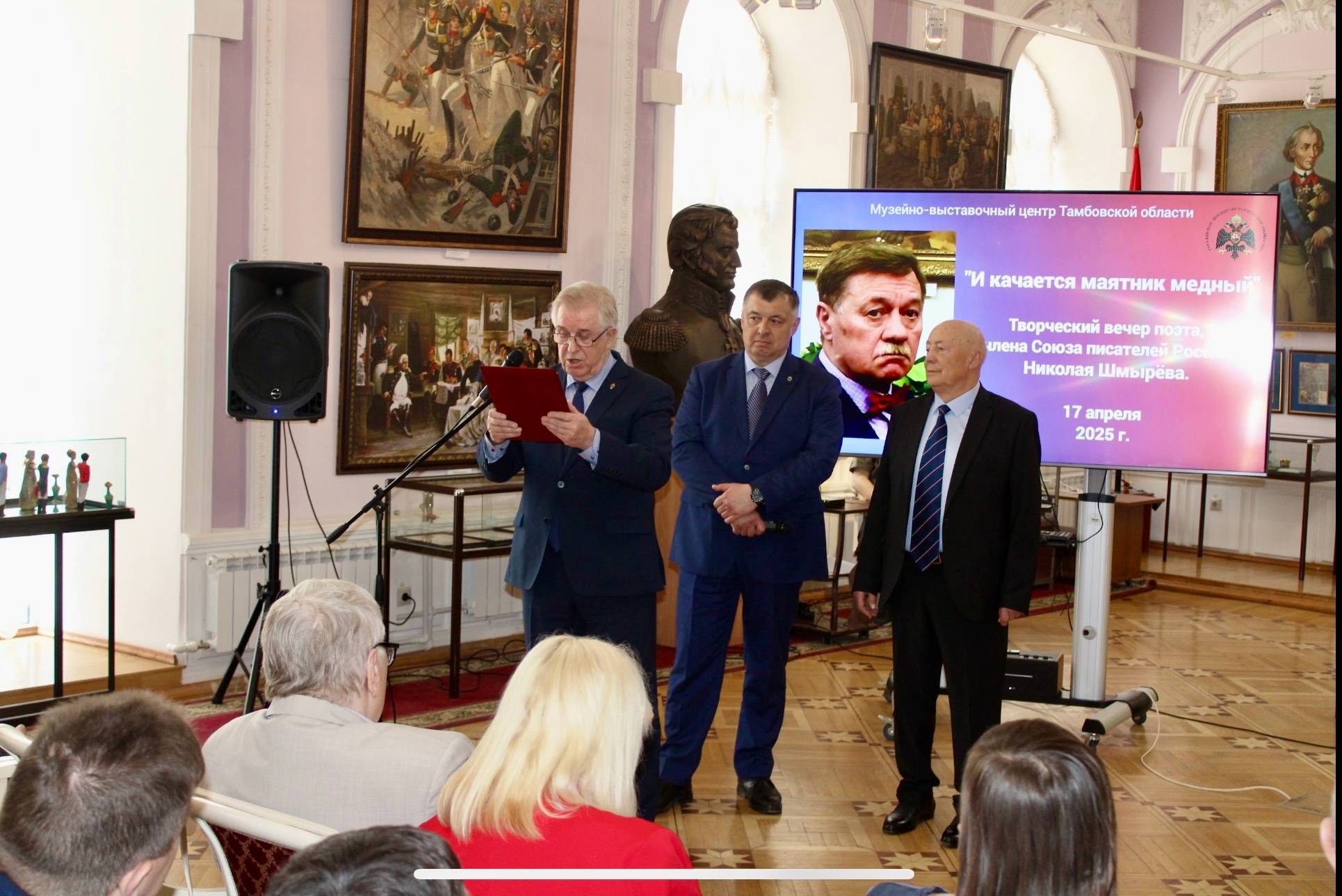 17 апреля в штаб-квартире Регионального отделения РВИО - Музейно-выставочном центре Тамбовской области состоялся творческий вечер поэта, члена Союза писателей России Николая Шмырёва «И качается маятник медный…», посвященный принятию поэта в Союз писателей России и выходу нового сборника его стихов.