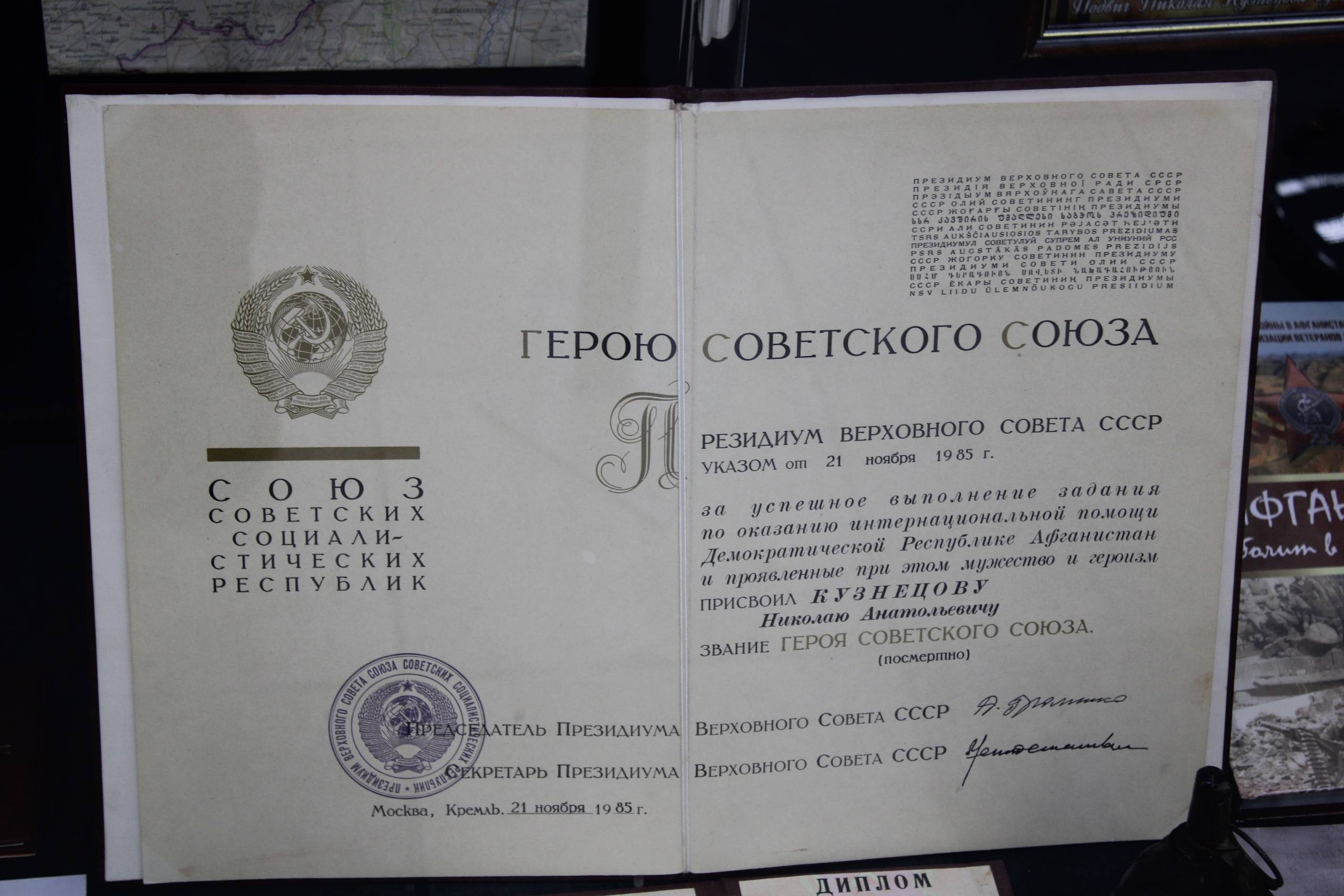 В течение дня посетители имели возможность ознакомиться с тематической экспозицией, посвящённой участию жителей нашего региона в боевых действиях на территории республики Афганистан (1979-1989), смогли увидеть китель, документы и государственные награды лейтенанта Николая Кузнецова — единственного уроженца Тамбовской области, получившего звание Героя Советского Союза (посмертно) в ходе войны в Афганистане, а также генерала армии Валентина Корабельникова — Героя Российской Федерации, начальника ГРУ (1997-2009) Генерального штаба ВС РФ, Почётного гражданина г. Рассказово, участника войны в Афганистане.