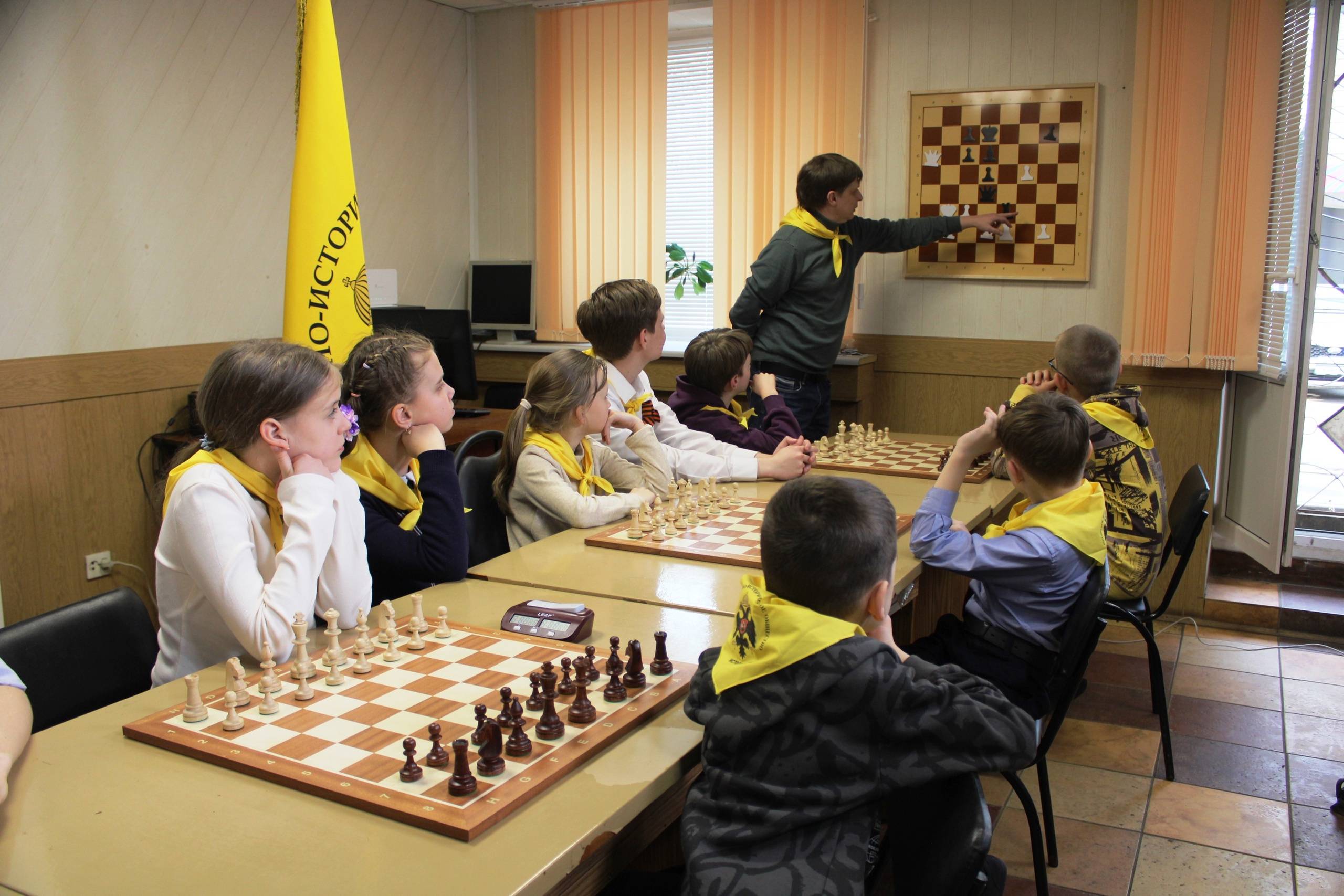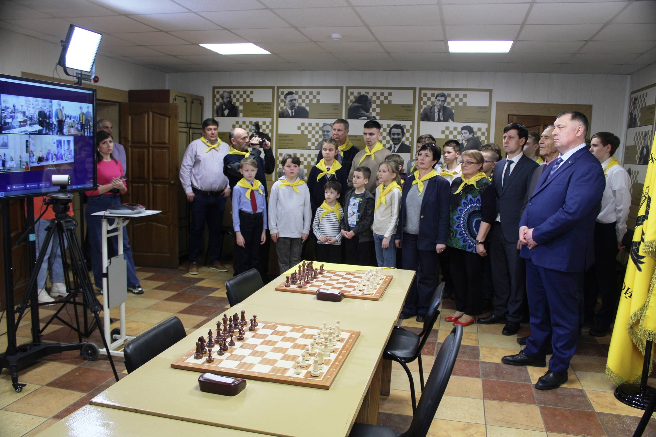 В формате телемоста прошло торжественное открытие шахматных школ Российского военно-исторического общества в четырех городах России — Калининграде, Севастополе, Тамбове и Ярославле. В нашем городе школа РВИО расположилась в стенах городского шахматного клуба на улице Володарского.