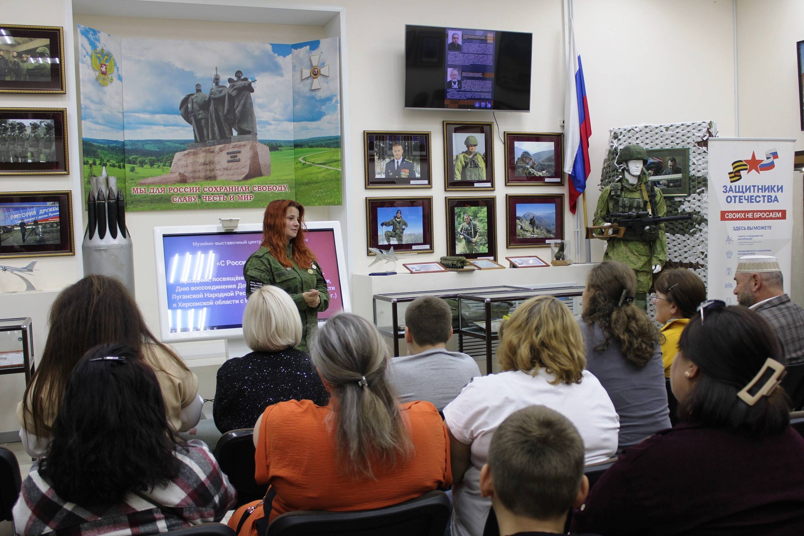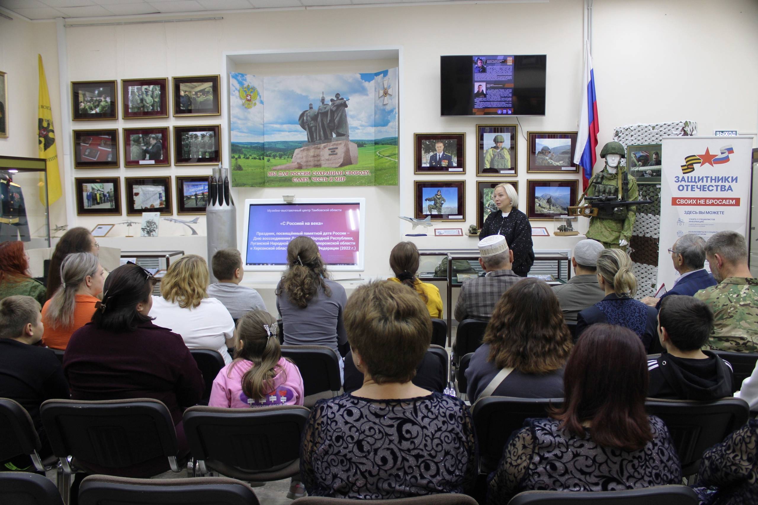 В штаб-квартире регионального отделения Российского военно-исторического общества - Музейно-выставочном центре Тамбовской области совместно с филиаом Государственного фонда поддержки участников СВО "Защитники Отечества" по Тамбовской области состоялся праздник «С Россией на века», посвящённый памятной дате России – Дню воссоединения Донецкой Народной Республики, Луганской Народной Республики, Запорожской области и Херсонской области с Российской Федерации (2022 г.).