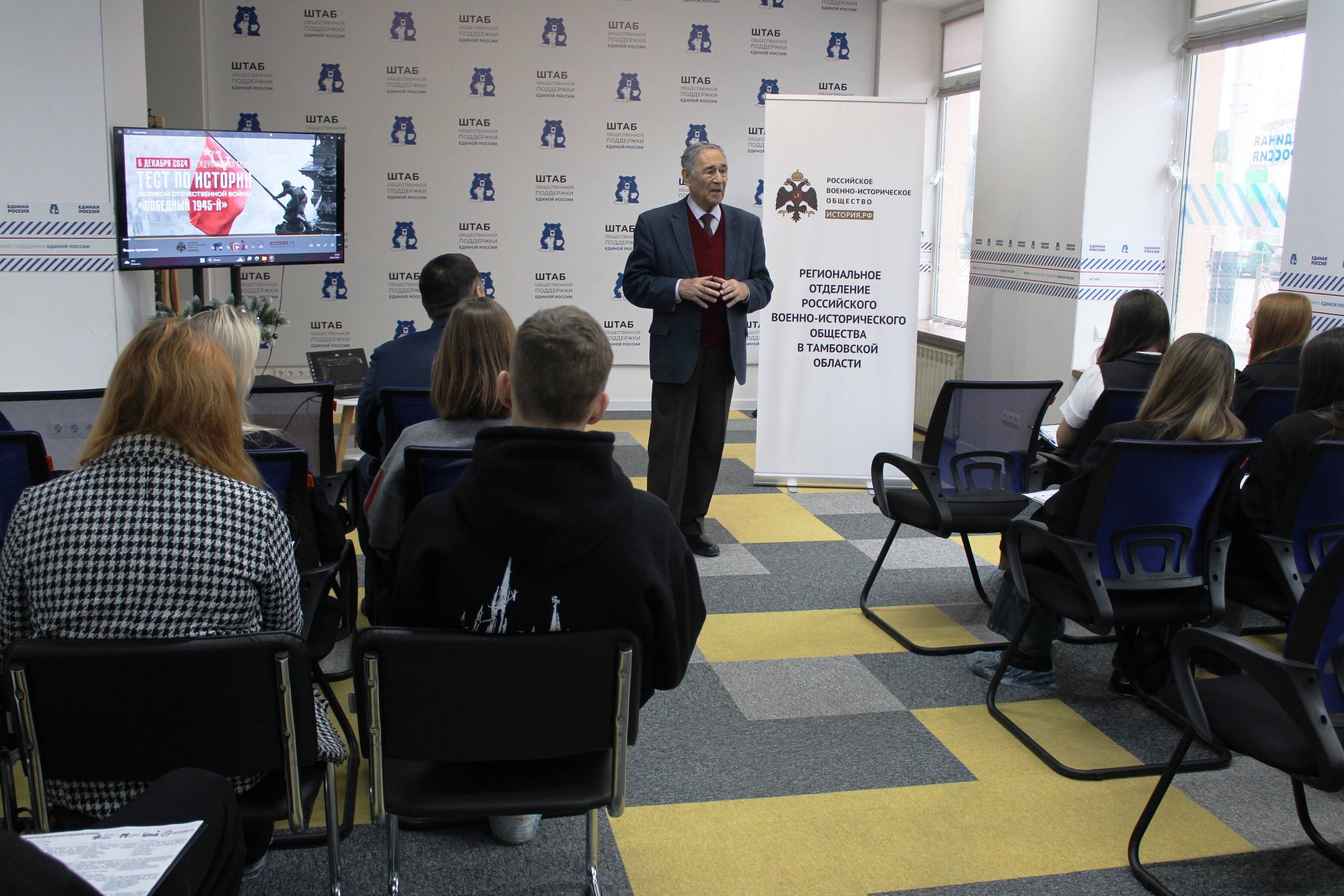 В работе центральной площадки теста в Тамбове, расположившейся в Штабе общественной поддержки «Единой России», приняли участие члены Совета Тамбовского Регионального отделения РВИО.