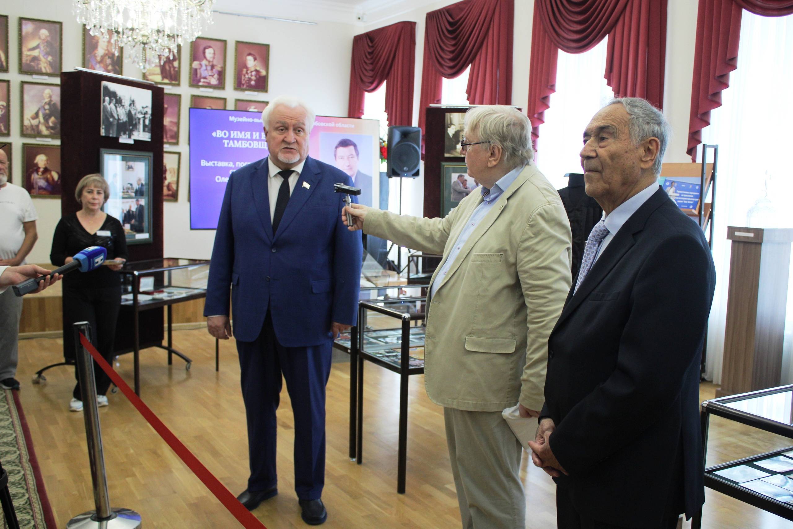 Советник Главы Тамбовской области, Председатель Регионального отделения РВИО в Тамбовской области Александр Воробьёв и Исполнительный директор Регионального отделения РВИО Надежда Кошелева приняли участие в торжественном открытии выставки «Во имя и во славу Тамбовщины», посвящённой 75-летию со дня рождения Олега Ивановича Бетина.