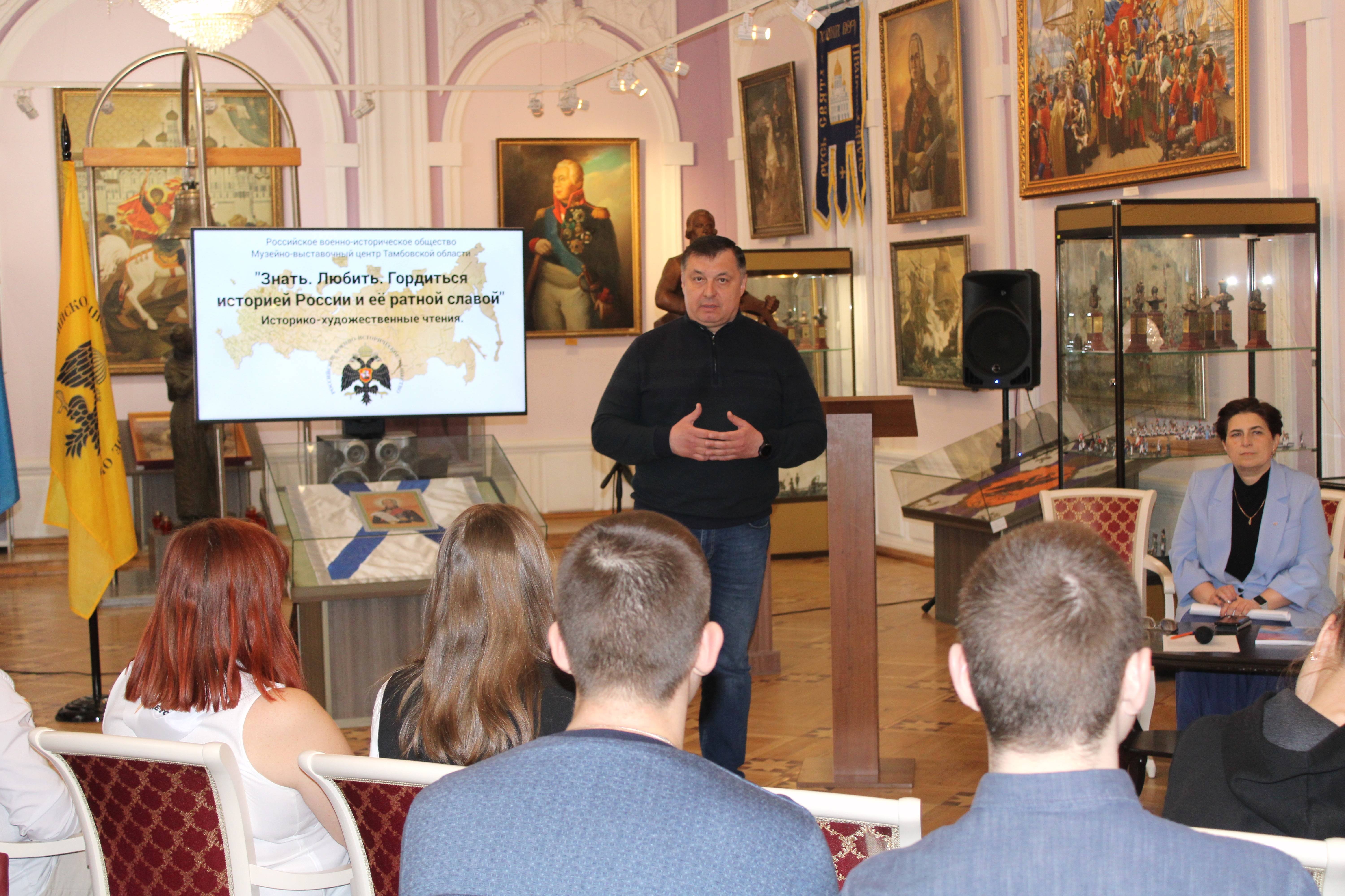 Историко-художественные чтения в Музейно-выставочном центре Тамбовской области - штаб-квартире регионального отделения РВИО - будут проводиться ежемесячно с учётом военно-патриотического потенциала лекций Председателя Российского военно-исторического общества В.Р. Мединского.