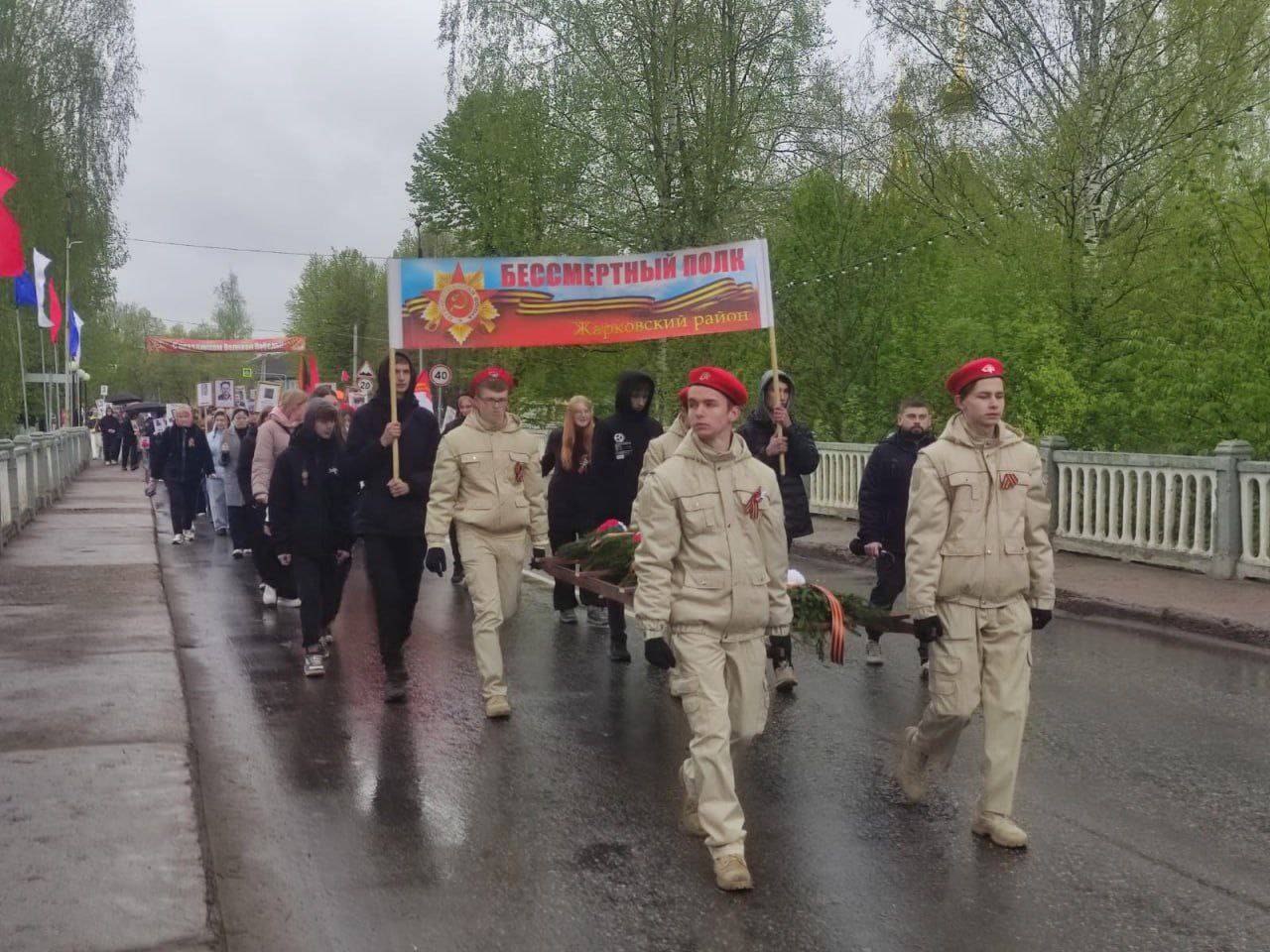 И.о. Главы округа А.М. Белявский и А.С. Раздорский (заместитель министра Здравоохранения Тверской области) отметили важность Дня Победы как символа памяти и гордости. В мероприятиях участвовали Пост №1, поисковики, юнармейцы, «Движение Первых» и «Орлята». Прошли акции «Георгиевская ленточка», «Солдатская каша», а также праздничные концерты. Жарковский округ сыграл значительную роль в Великой Отечественной войне, в том числе в известном рейде Доватора. Более 2,5 тысяч жарковчан не вернулись с фронта. Сегодня жители округа оказывают поддержку бойцам СВО, отправляя гуманитарные грузы.