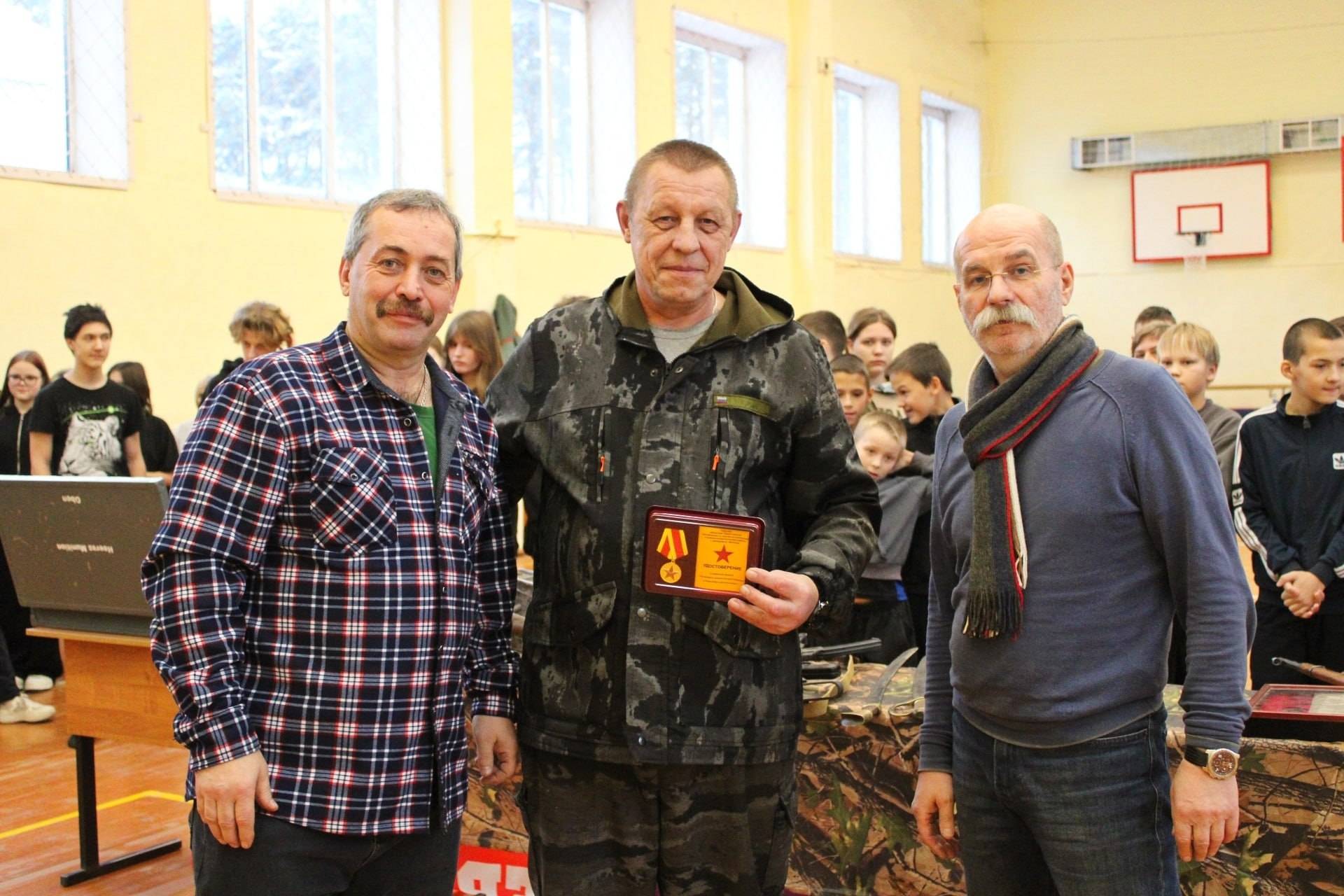 В ходе визита представители ТООО «Витязь» вручили награду (медаль «За вклад в военно-патриотическую и поисковую деятельность») участнику поискового отряда «Максатиха» В.А.Берендакову, который в этом году отметил 40-летнюю дату с начала своей поисковой работы на местах сражений времен Великой Отечественной войны.