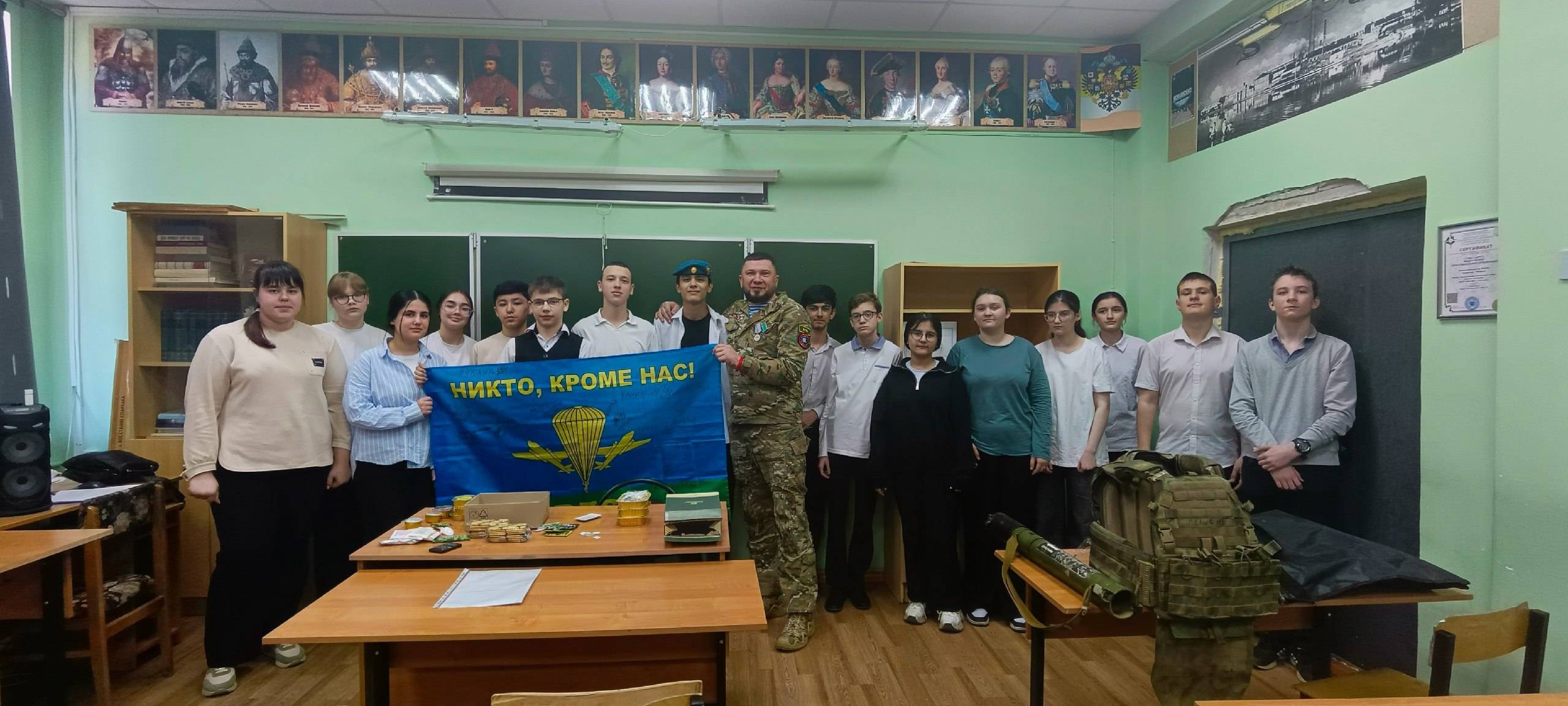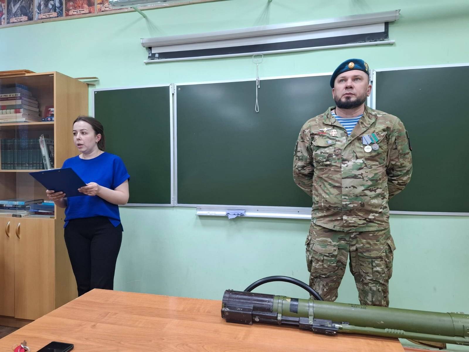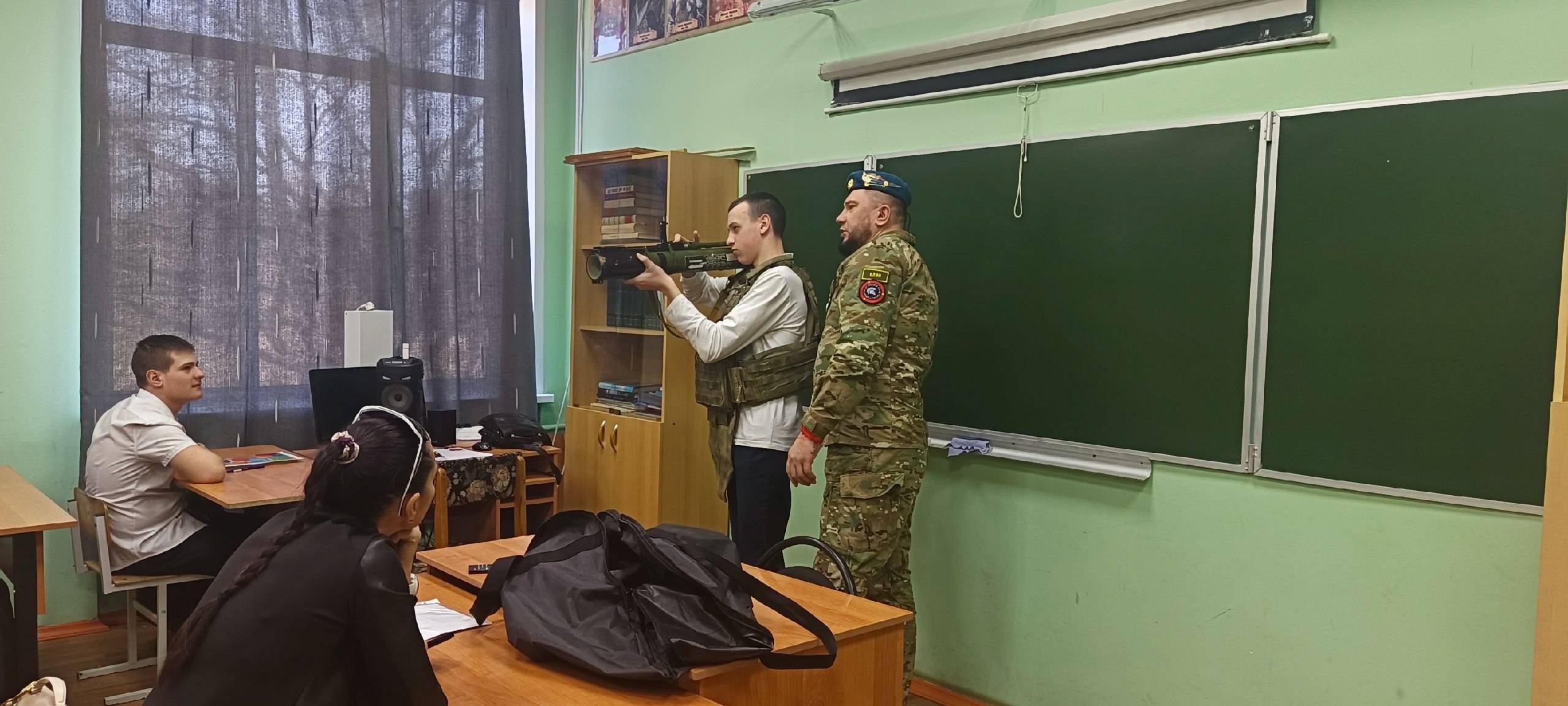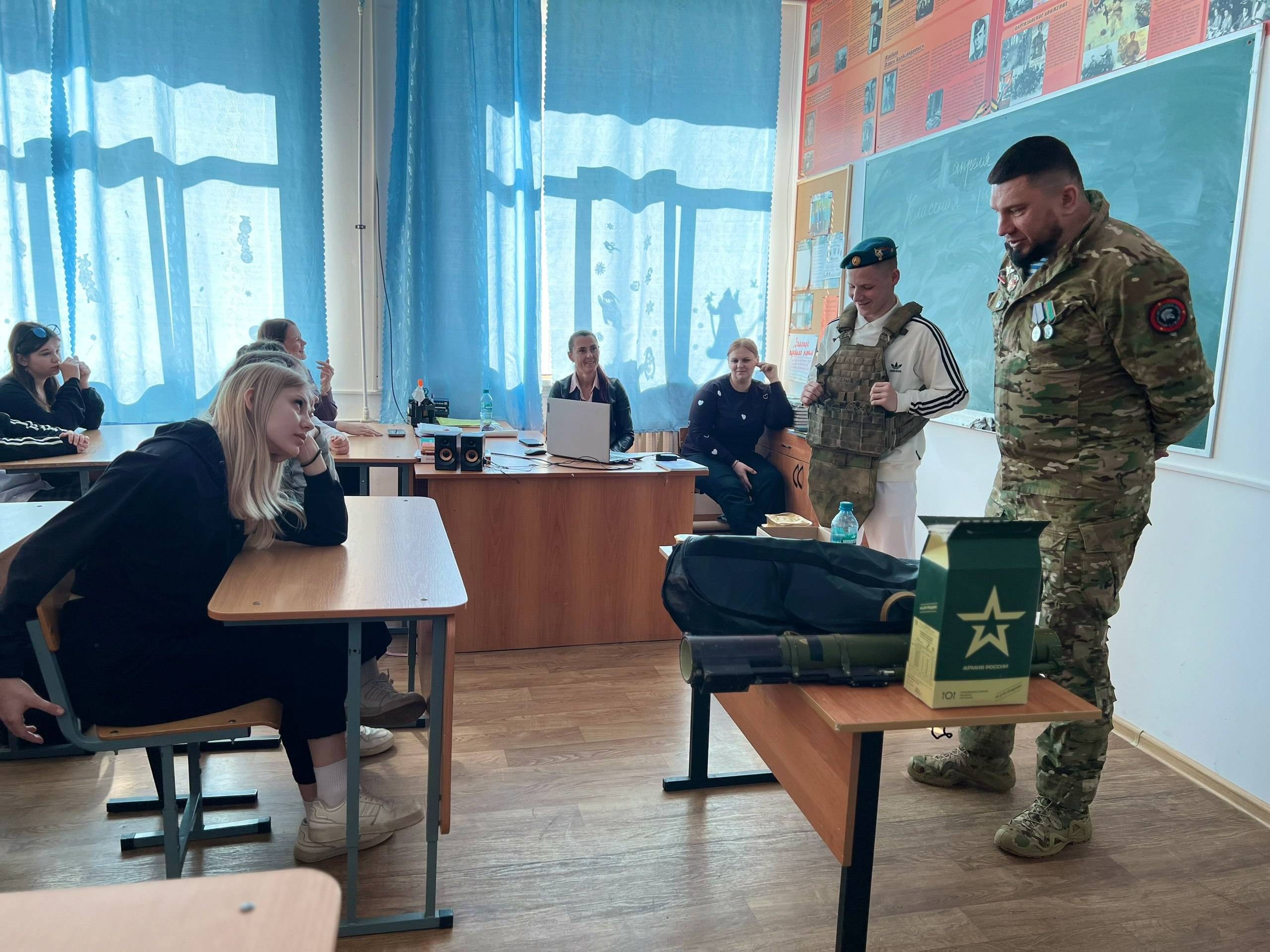 Выступая перед учащимися, Евгений поделился опытом службы, подчеркнув значение воинского долга, любви к стране и готовности к самопожертвованию. В ходе встречи он продемонстрировал бронежилет и гранатомёт, позволив школьникам наглядно оценить особенности оснащения военных. Также он передал в дар школьному музею сухой паёк, объяснив, из чего состоит рацион бойца на передовой.