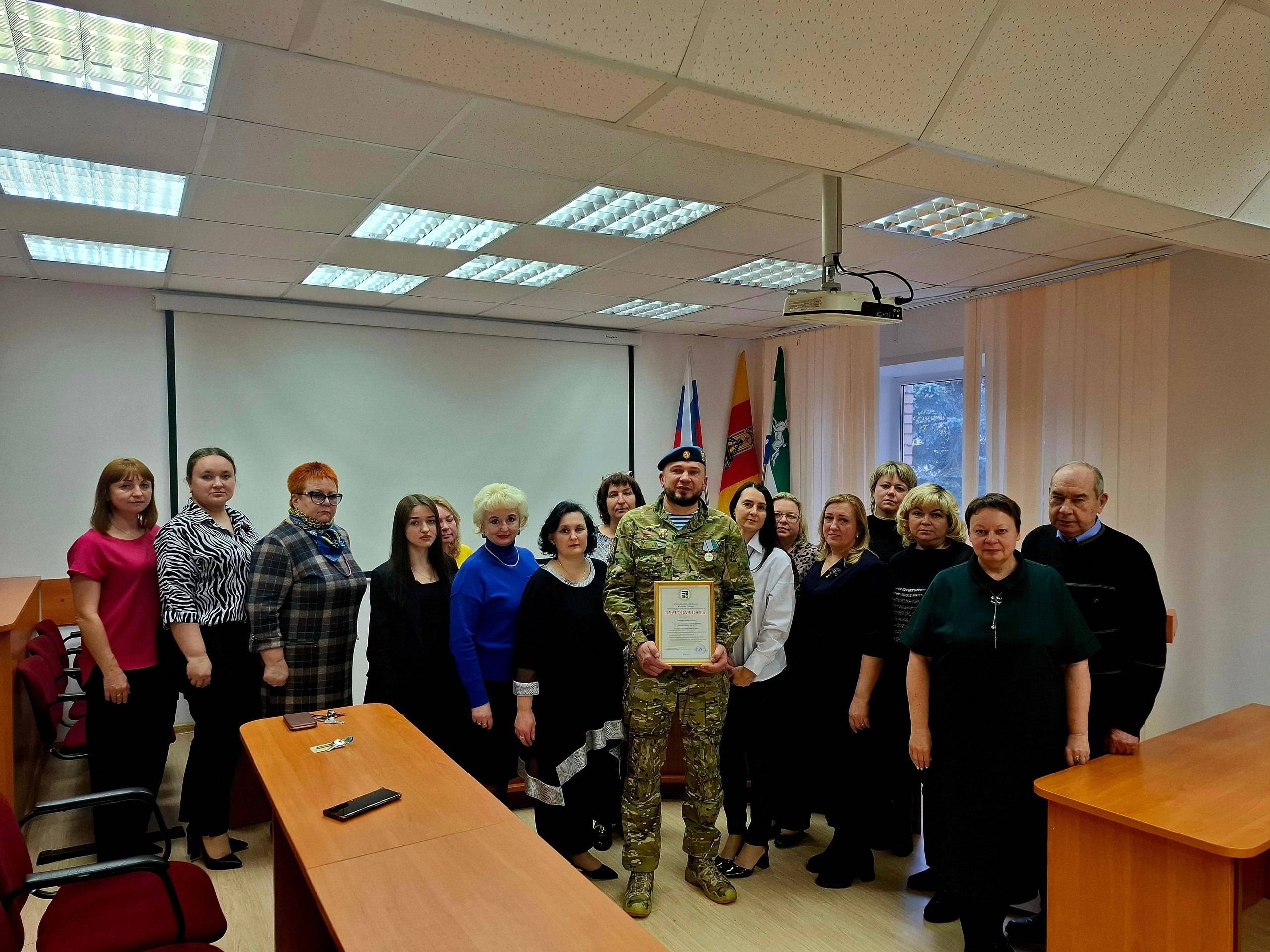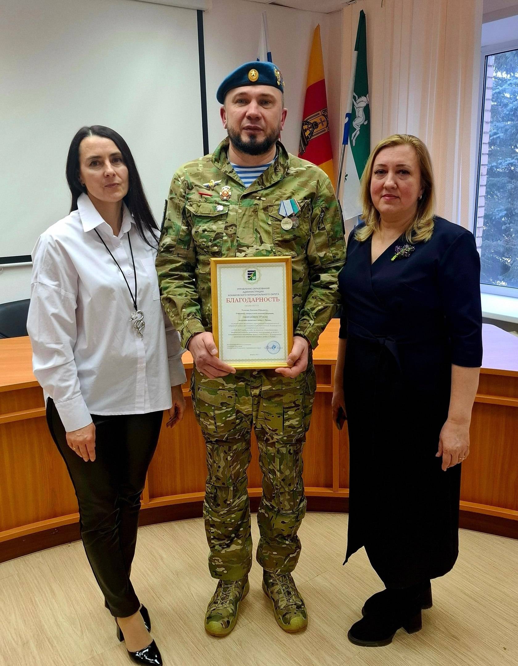 12 февраля Евгений Телегин встретился с работниками управления образования. В ходе беседы стороны обсудили дальнейшее сотрудничество и новые инициативы. Он рассказал о своем боевом пути, ответил на вопросы. В завершение встречи получил благодарность от управления образования за вклад в патриотическое воспитание молодежи.