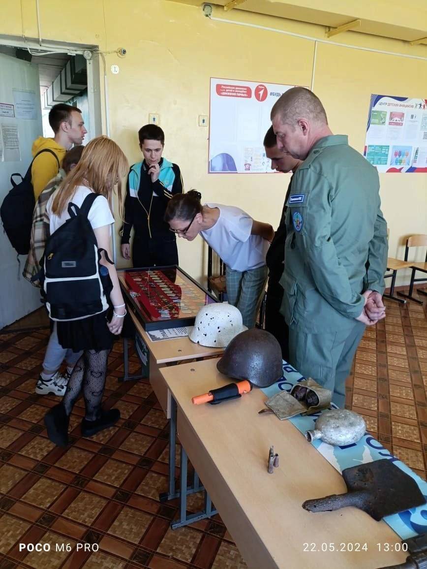 22 мая 2024 года члены местного Удомельского отделения ТРО РВИО: заместитель командира поискового отряда "Калина" А.В. Никитин и Г.В. Булин посетили МБОУ Рядская ООШ (Тверская обл., Удомельский г.о.).