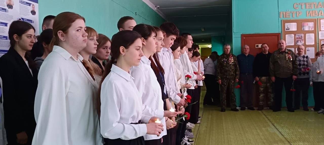 К собравшимся обратился Глава округа Воробьев В.А., заместитель председателя местного отделения воинов-интернационалистов Полозков А.В., проникновенные стихи читали юнармейцы школы № 3.