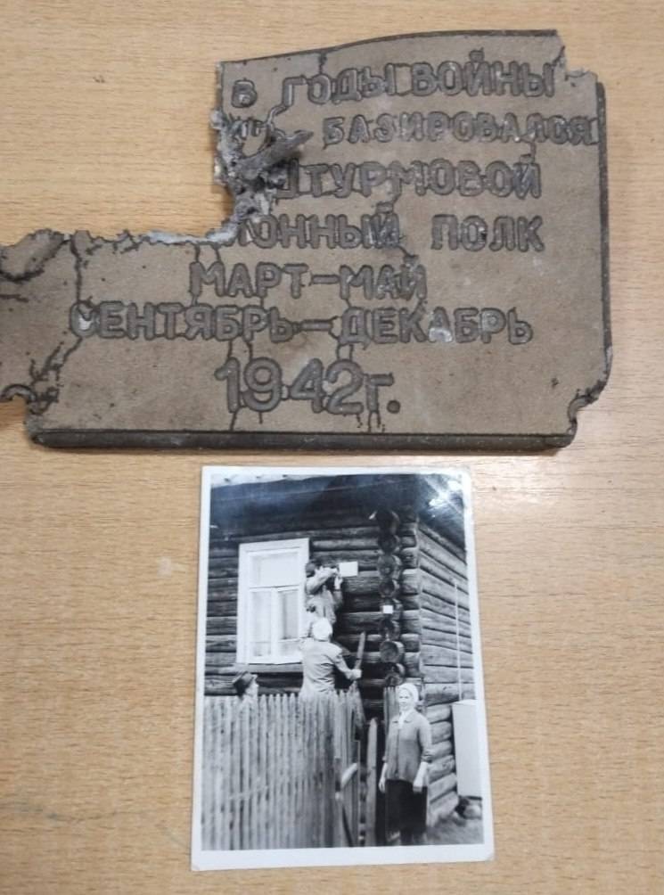 Табличку передал в дар школьному музею Денис Соколов, возглавляющий Бологовское отделение Российского военно-исторического общества (РВИО). По словам Ольги Крестининой, ответственной за музей, табличка была установлена еще в 1993 году энтузиастами, собиравшими информацию о героическом авиаполке.