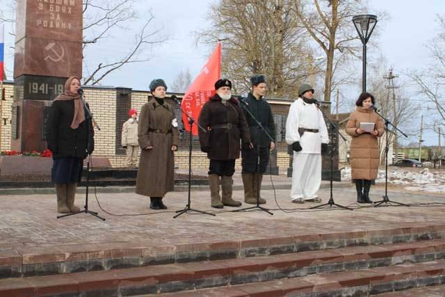 Костюмированные образы артистов Культурно-досугового центра – бойцов и командиров Красной Армии, военного санинструктора, партизана, сельчанки – помогли собравшимся у мемориала представить в своём воображении события тех суровых дней и восстановить их хронологию.