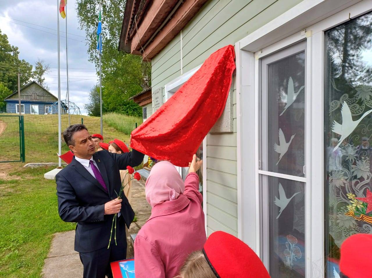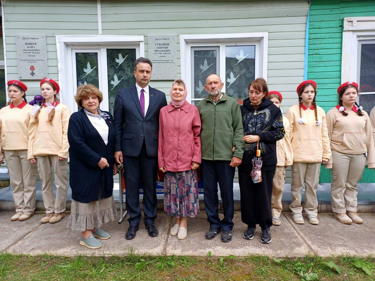 Делегация отправилась в деревню Щучье, где на здании школы установили мемориальную доску погибшему участнику СВО Дмитрию Губанову. В память о его подвиге и родителях, Виталии Ивановиче и Любови Николаевне, прозвучали тёплые слова.