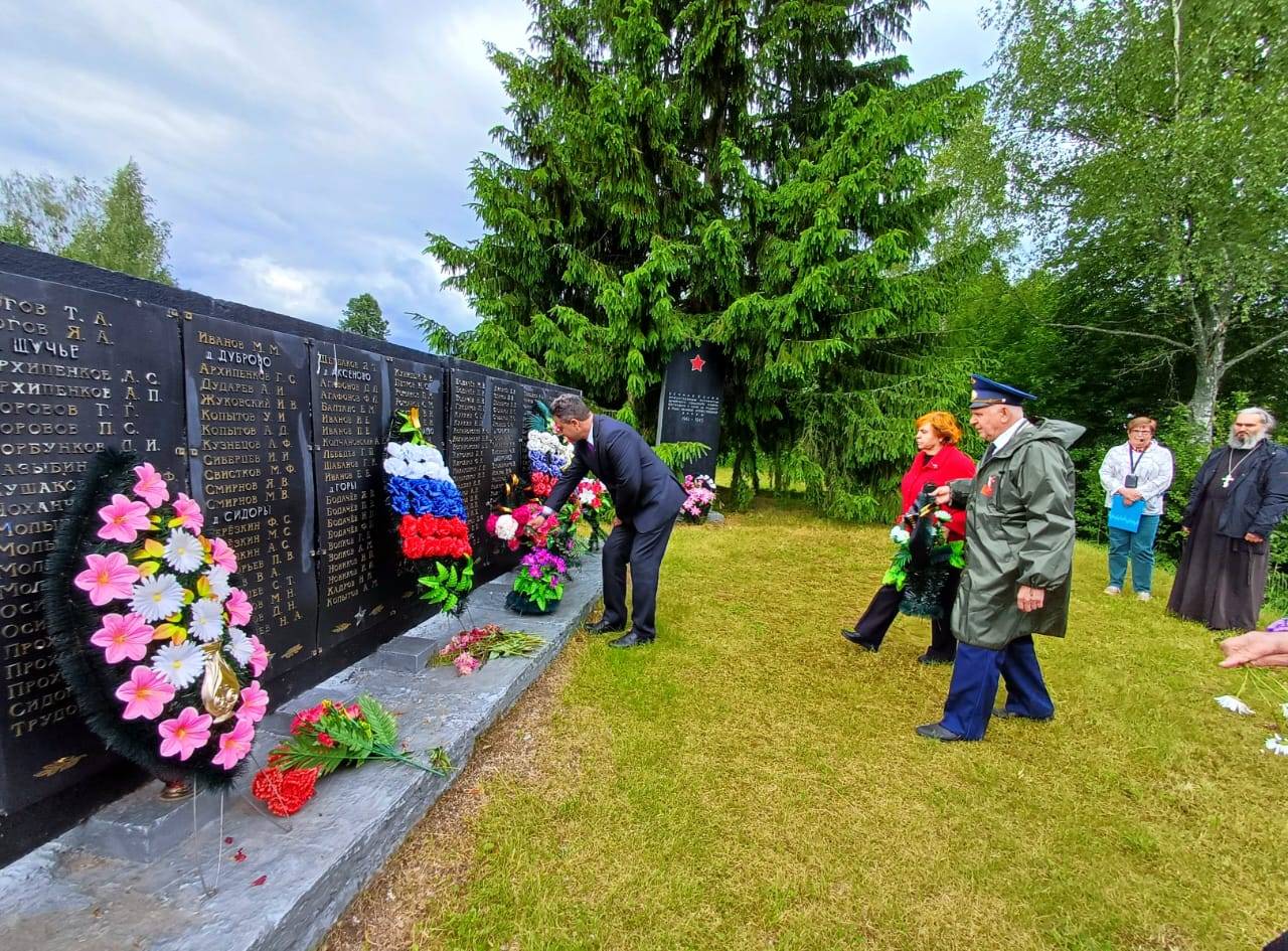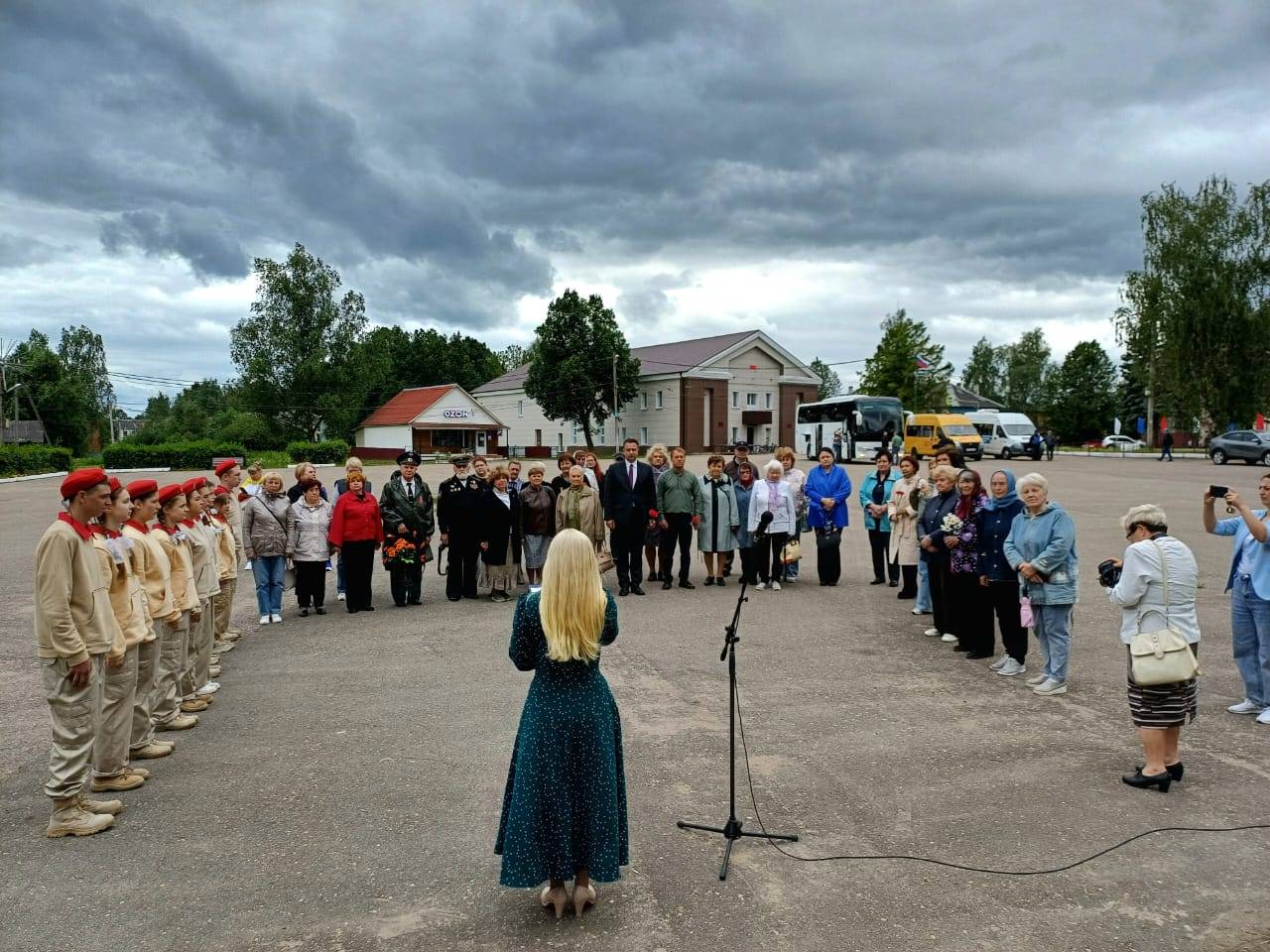 И. о. главы А. М. Белявский приветствовал гостей и открыл выездное заседание. Сначала ветераны и юнармейцы возложили венки у мемориала воинам-интернационалистам и участникам специальной военной операции в посёлке Жарковский.