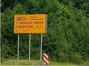 На трассах Тверской области с 2015 по 2023 годы установили 25 ярко-желтых информационных знаков РВИО с краткими сведениями о подвигах участников Великой Отечественной войны. Эти указатели задумывались как «маяки памяти», чтобы каждый, увидев их в пути, на минуту задумался о войне и цене победы.