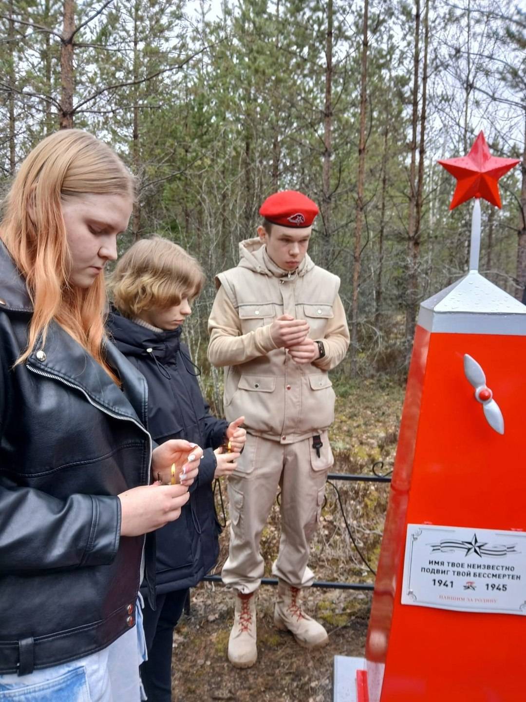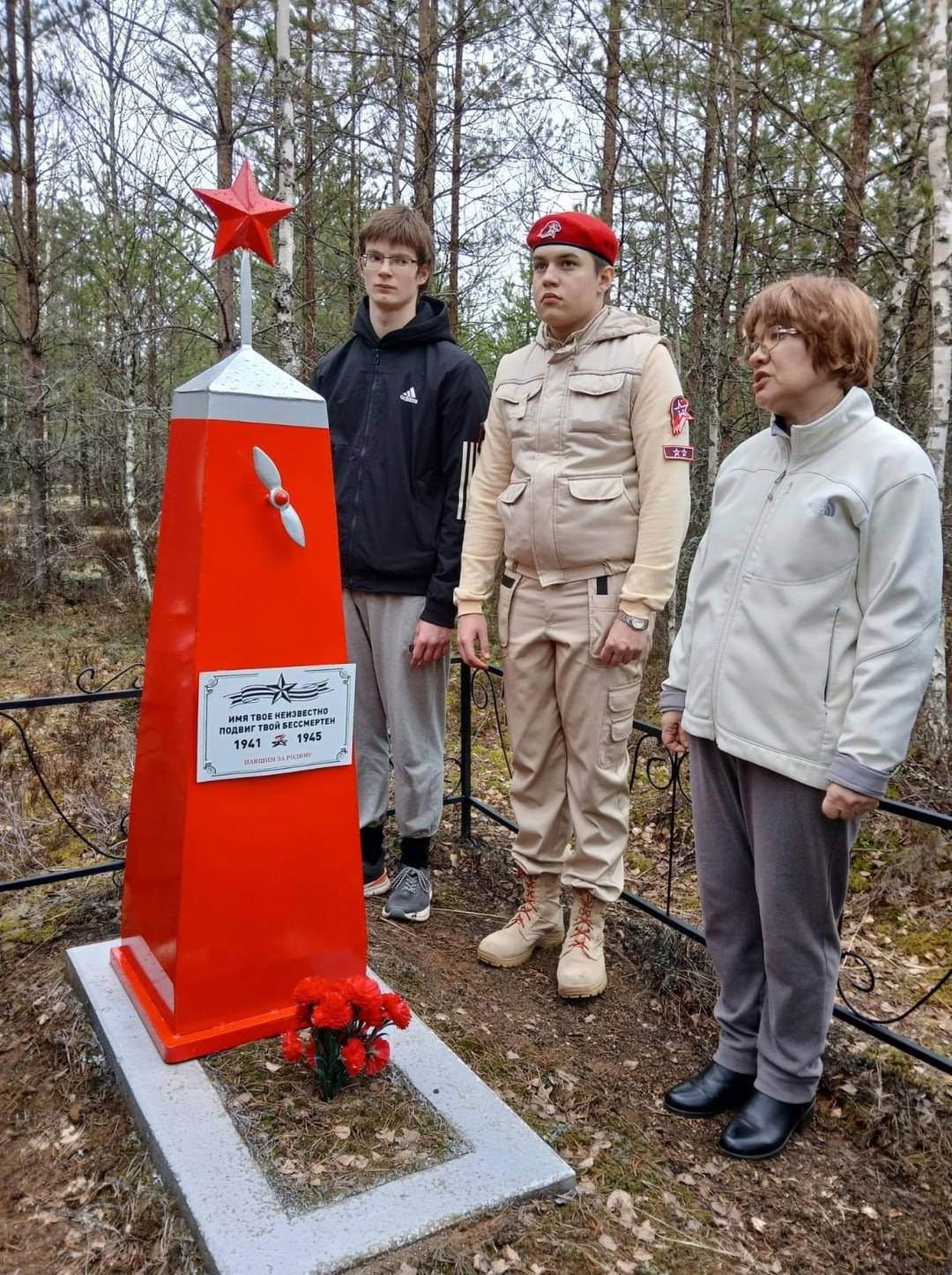 17 апреля у памятника прошел торжественный митинг. Учащиеся 11 класса вместе с классным руководителем, а также заведующим поселковой библиотекой и членом Бологовского местного отделения ТРО РВИО Лилия Николаевной Кабиной почтили память погибших в годы войны.