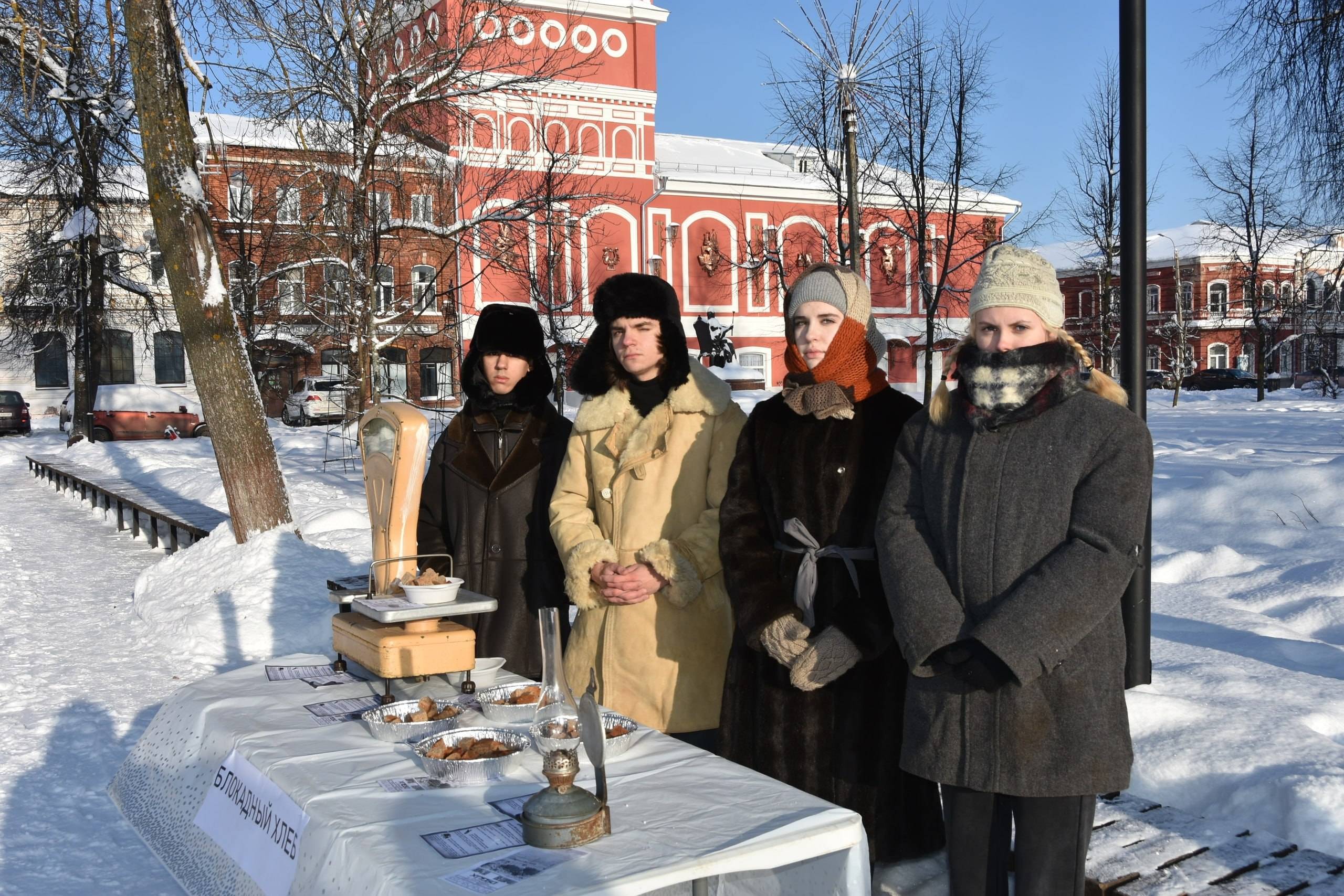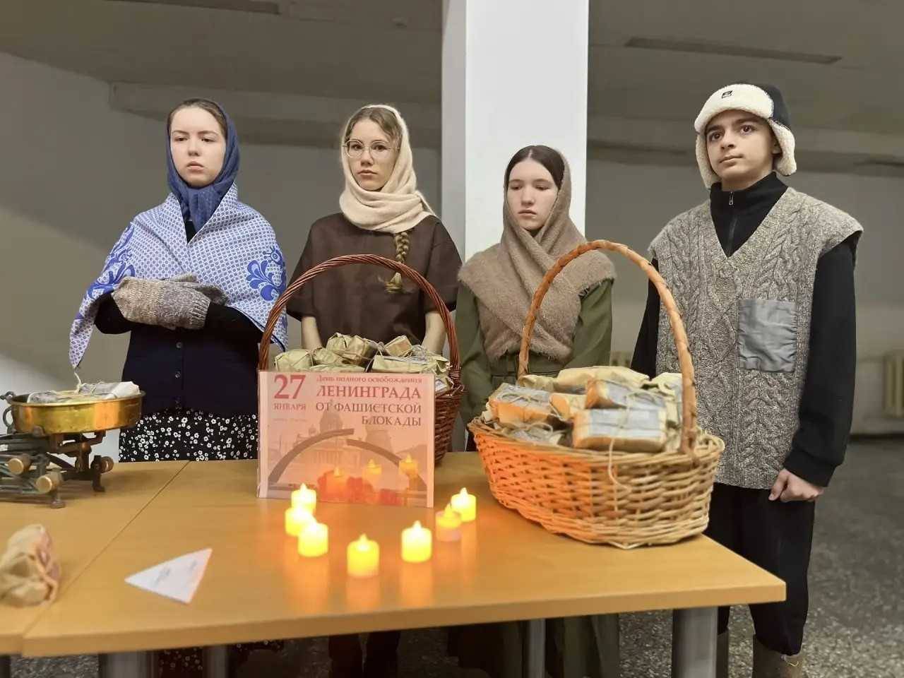 В региональной столице торжественная церемония началась с минуты молчания, затем участники перешли к акции «Блокадный хлеб». Волонтёры раздавали 125-граммовые ломтики, символизирующие суточный паёк ленинградцев в годы блокады.
