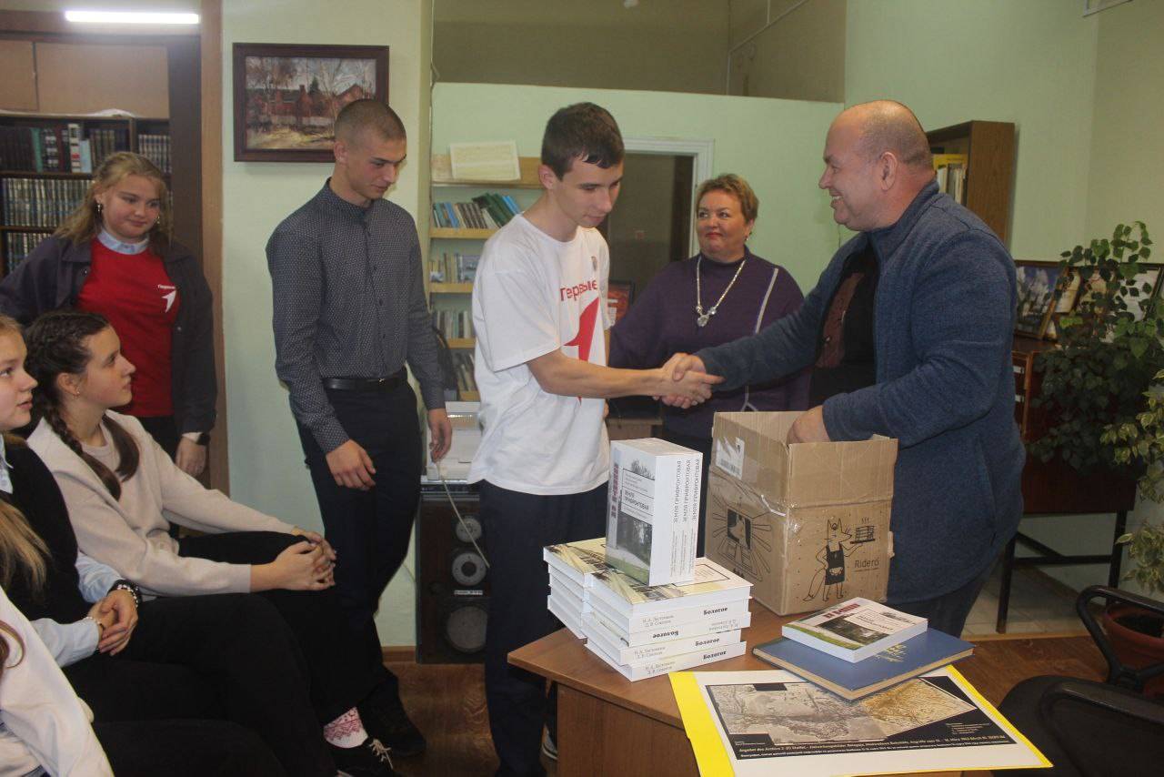 В продолжение темы Денис Валерьевич Соколов не только рассказал юным патриотам о книге "Земля прифронтовая" и о своих героических предках, но и предложил им стать соавторами будущих книг, записав воспоминания своих прадедов, которые станут их основой и подарил книги "Бологое" и "Земля прифронтовая". Денис Валерьевич также призвал школы к сотрудничеству и проведению совместных уроков.