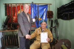 В знак благодарности за многолетнюю работу по сохранению исторической памяти, активное участие в деле патриотического воспитания подрастающего поколения и большой личный вклад в развитие поискового движения в Тверской области депутат, член ТРО РВИО Алексей Виноградов вручил коллективу «Витязя» в лице руководителя Александра Иванова Благодарственное письмо Тверской городской Думы: