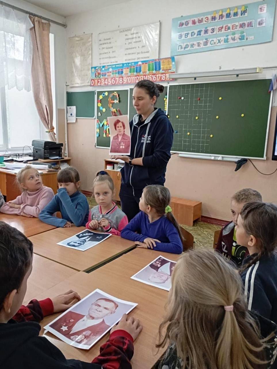 Это был очень важный и трогательный день. С ребятами поговорили о трагедии, которую пережило мирное население в годы Великой Отечественной войны, вспомнили героев, изучили медали прадедов, которые стали живым свидетельством их подвигов. Вместе рассмотрели карту Калининской области и искали на карте деревни, про которые рассказываем в проекте.