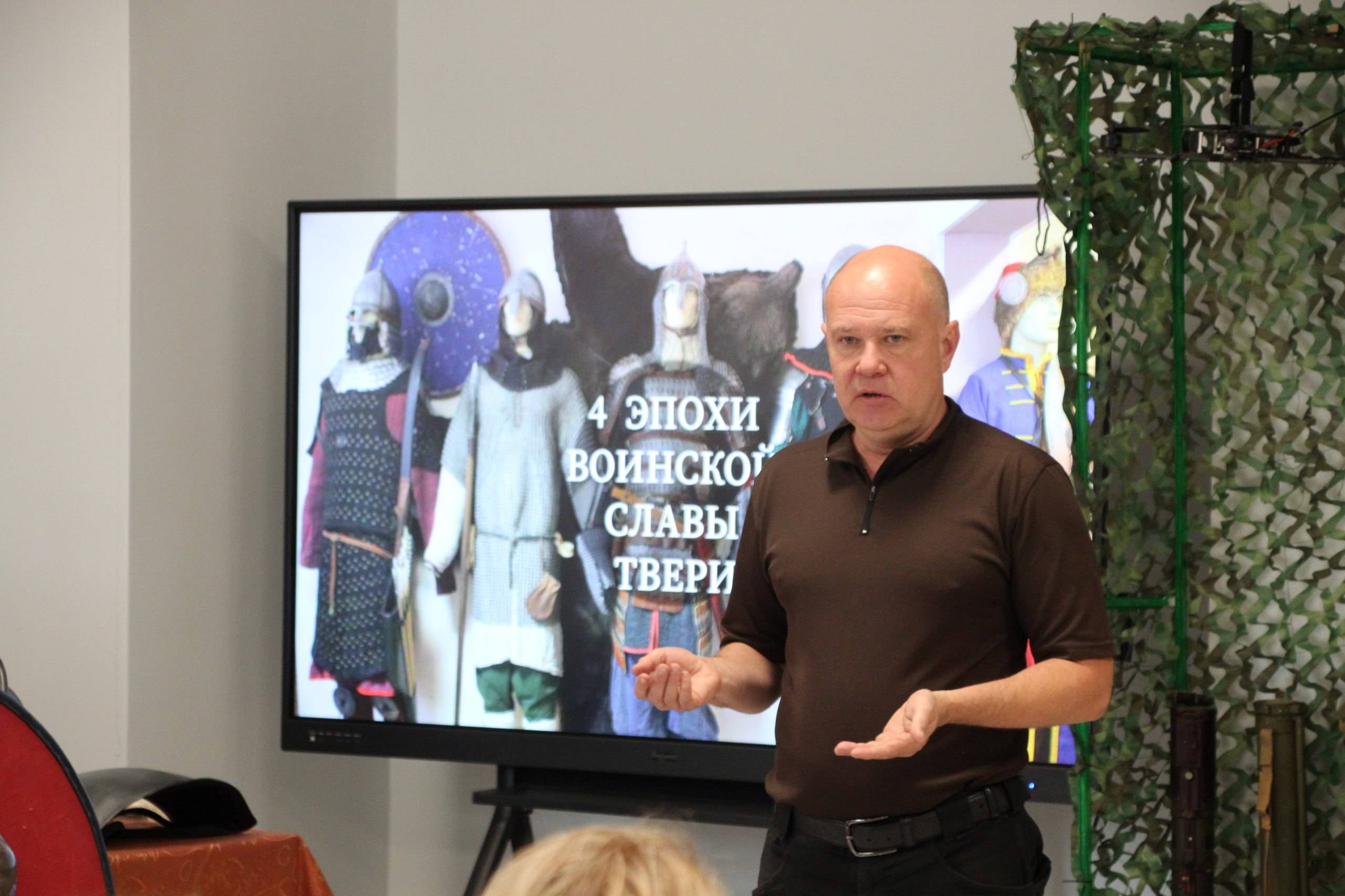 Алексей Виноградов, депутат Тверской гордумы и куратор выставки, поприветствовал гостей от лица сенатора Людмилы Скаковской и провёл экскурсию, подробно рассказывая о победах русского оружия над захватчиками.