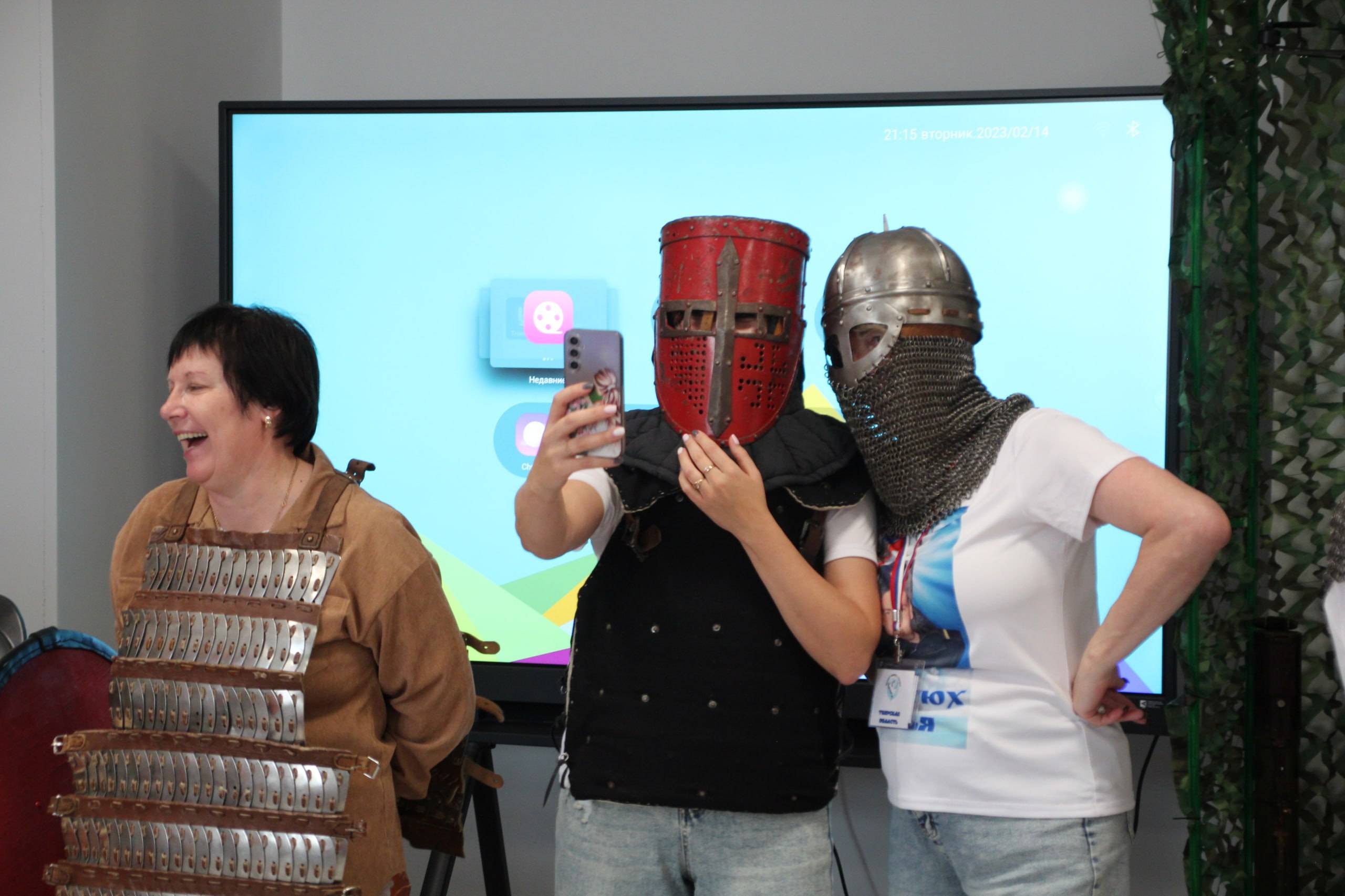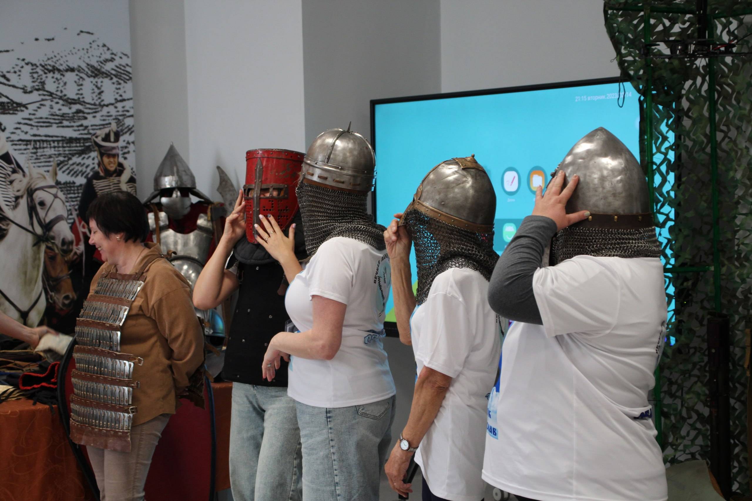 Гости внимательно изучали экспонаты и примеряли доспехи. Во время экскурсии развеяли популярные мифы об использовании того или иного оружия.