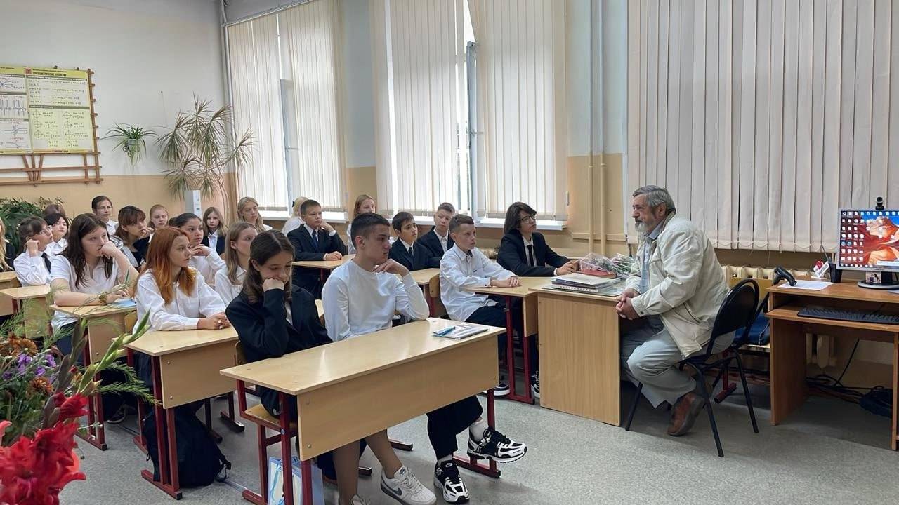 На встрече с восьмиклассниками гость рассказал о своих школьных годах и вспомнил своих преподавателей.