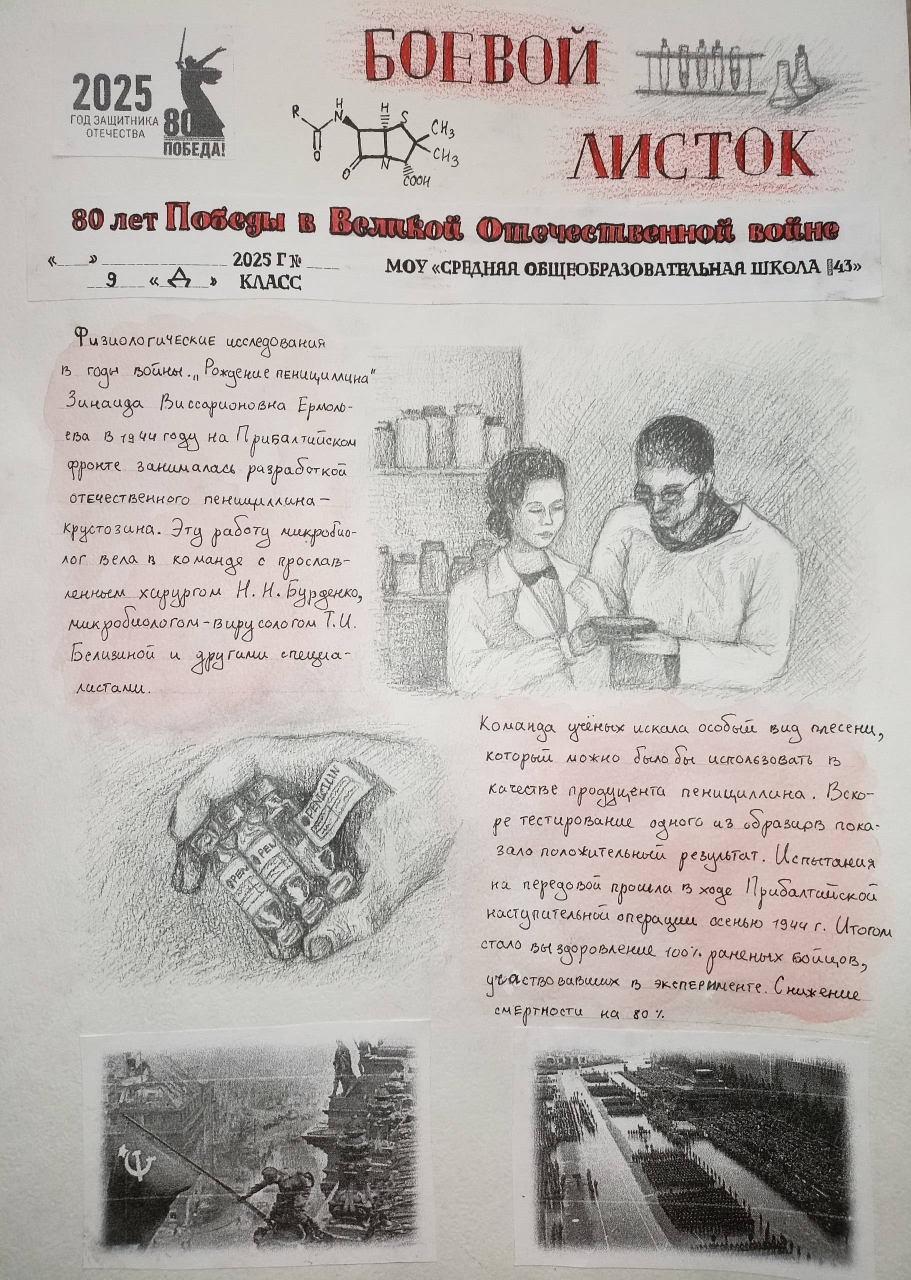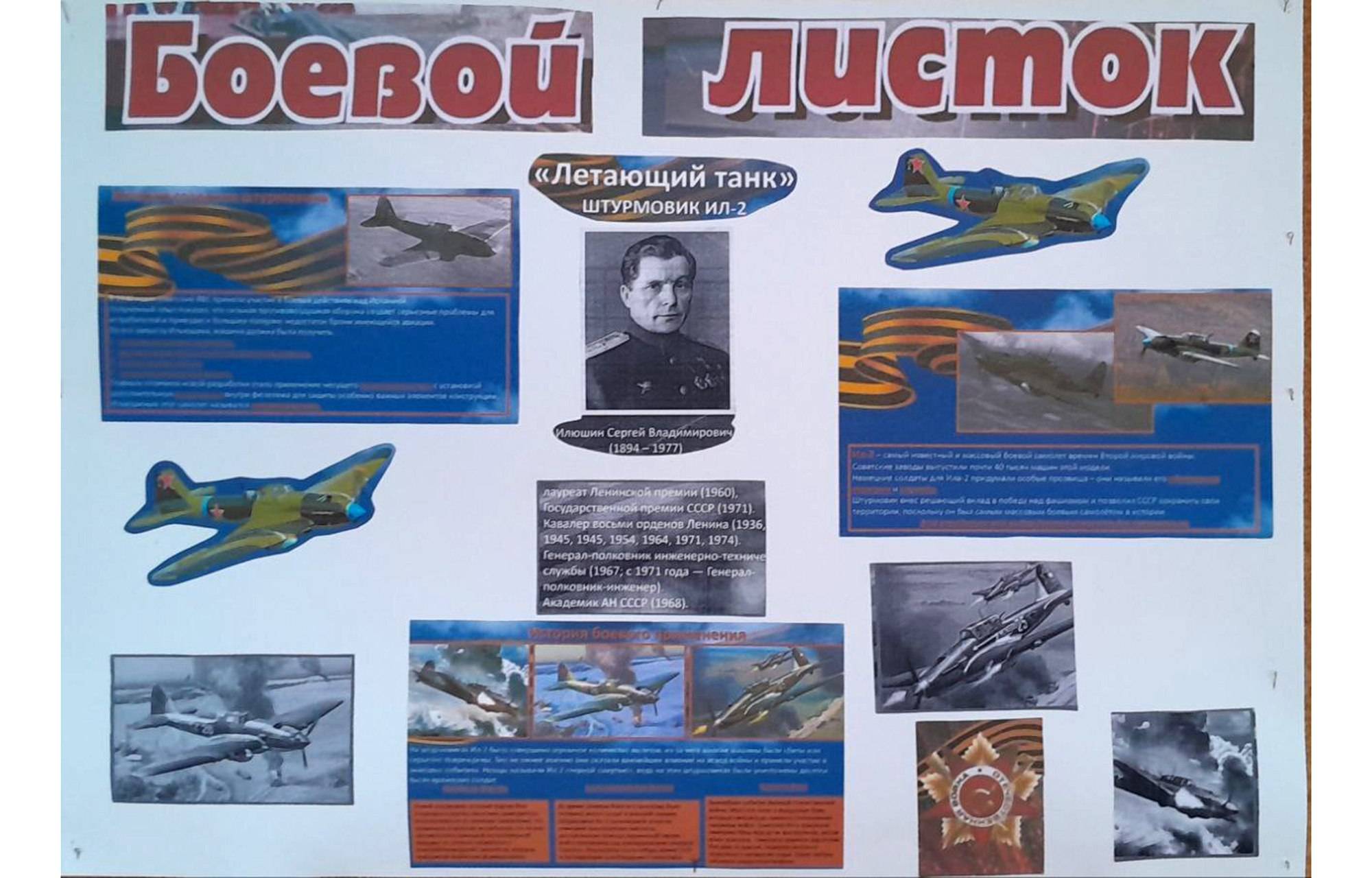 Работу ведут классы и школьные медиастудии. Листки выходят еженедельно. В них рассказывается, например, о технике времен войны — БМ-8 «Катюше» и ИЛ-2, а также о создании отечественного пенициллина.