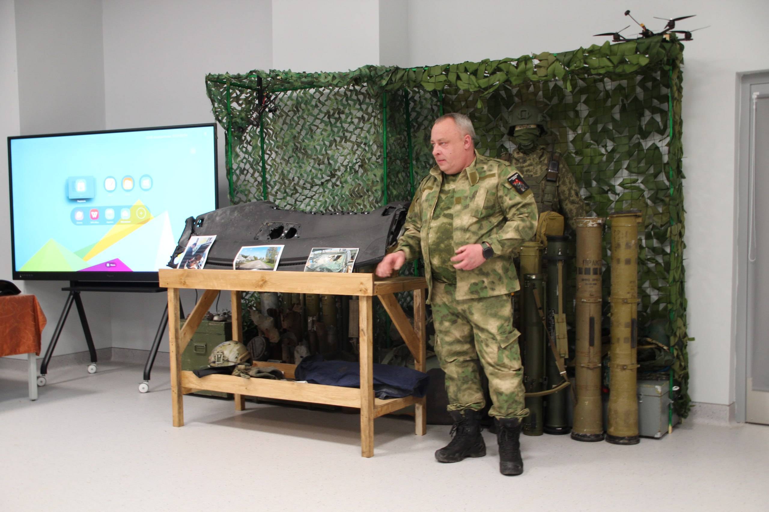 В День героев Отечества, в Центр образования №57, где находится интерактивная выставка «4 эпохи воинской славы Твери», Георгий Васильевич передал новые артефакты для очередной экспозиции выставки — пятой эпохи. Это детали от поврежденного украинским дроном автомобиля, осколки, извлеченные из кузова машины и другие предметы, ставшие новыми экспонатами выставки.