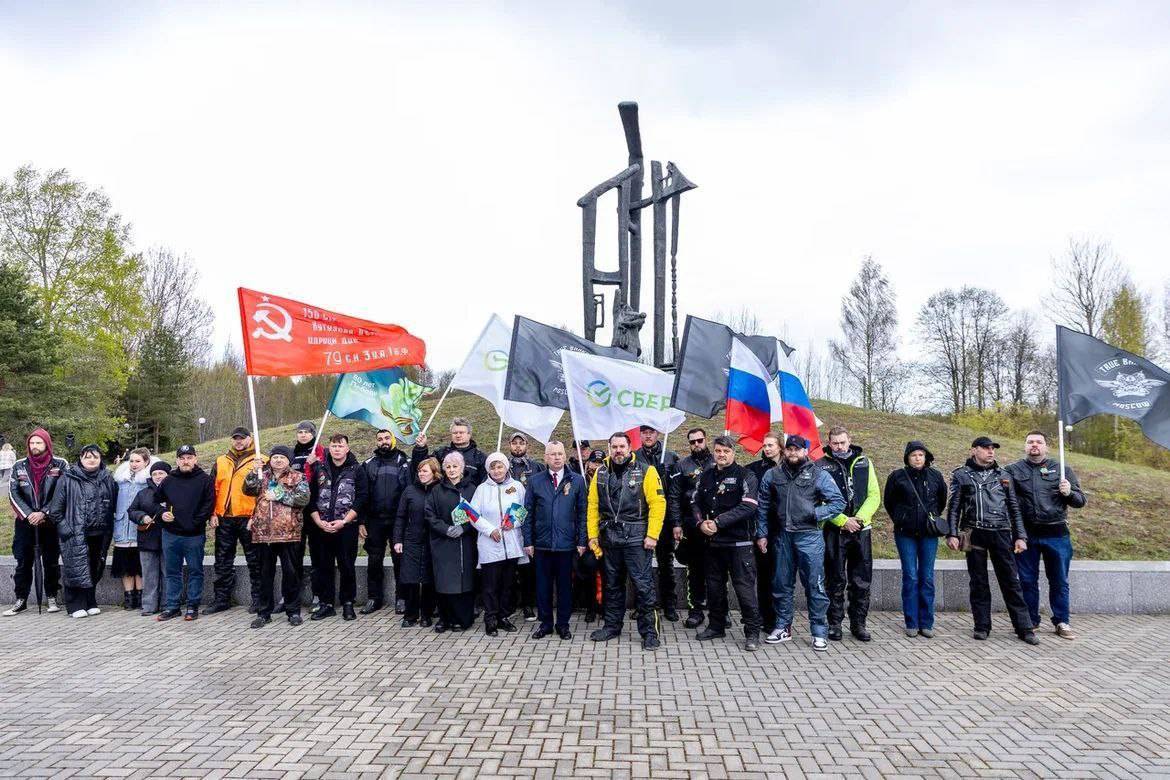 Участники Мотопробега, организованного совместно со Сбером и мотоклубом «True bankers», посетили 11 мая мемориальный комплекс Ксты Пеновского района