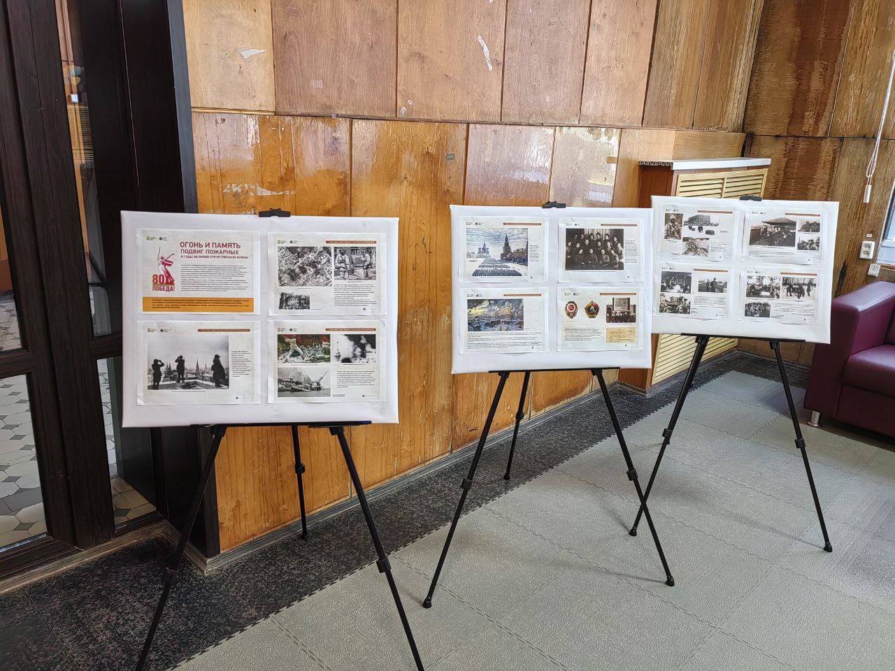 Экспозиция, подготовленная с особой тщательностью, знакомит посетителей с малоизвестными страницами героизма огнеборцев времен войны. Благодаря собранным архивным документам, фотографиям, уникальным артефактам, а также воспоминаниям ветеранов и их потомков, выставка оживляет истории героев, которые, зачастую ценой собственной жизни, боролись с огнем, бушевавшим после вражеских бомбардировок и диверсий в советском тылу.
