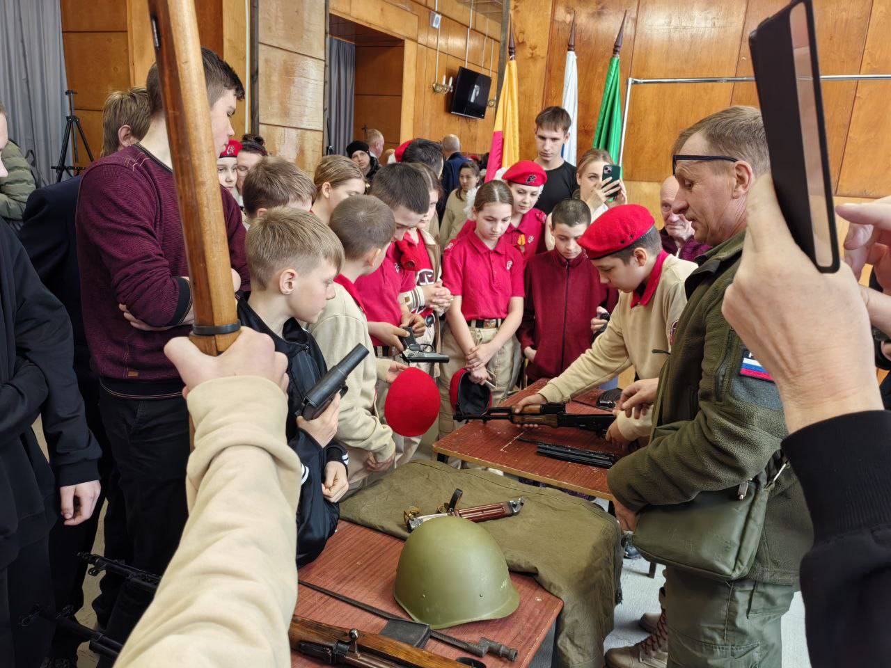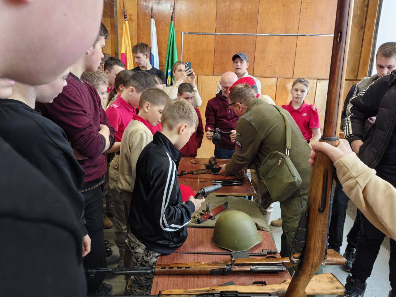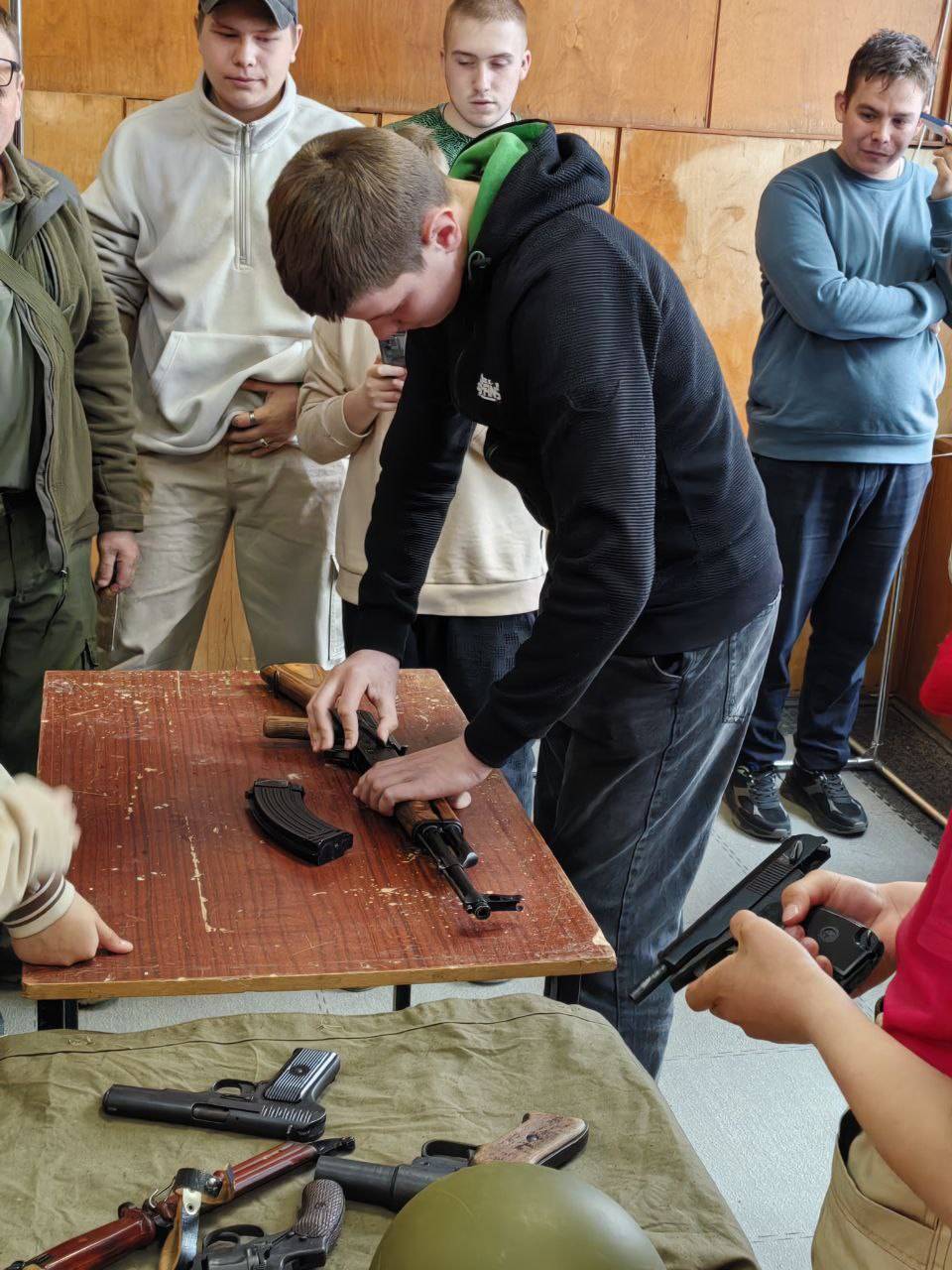 Перед молодежью выступили ветераны боевых действий из Торжокского района. Валерий Андреев рассказал о благотворительных концертах, которые он организует в зоне специальной военной операции. Николай Акуленок отметил работу Тверской региональной организации ветеранов Афганистана и СВО, которой он руководит. Владимир Филиппов представил выставку, на которой были собраны образцы оружия, медалей, военной формы и технических средств периода Великой Отечественной войны, Афганской кампании 1987 года и недавнего времени — с 2022 по 2025 год. Степан Марков кратко представил информацию о работе спецподразделений в Торжке. Александр Владимиров, представляющий инициативную группу «КуVшиновский тыл», поделился сведениями о деятельности по обеспечению гуманитарной помощи. Сергей Баранов от центра патриотического воспитания молодежи провёл мастер-класс по разборке и сборке оружия.