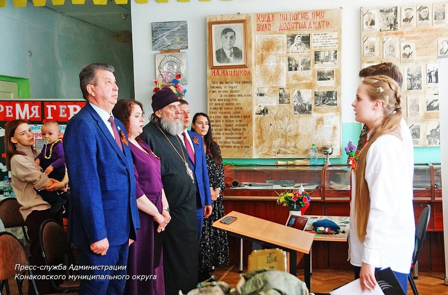 В открытии приняли участие Глава Конаковского округа Алексей Пляскин, заместитель Главы Администрации Конаковского муниципального округа Михаил Кожехов, заместитель начальника Управления образования Администрации Конаковского муниципального округа Наталия Поляница, директор Селиховской средней школы Ольга Ворушилина, настоятель Ильинского храма в селе Селихове протоиерей Виктор Гуров, председатель Тверской ОВПО «Память 6-й роты ВДВ» Николай Афонин, организатор и руководитель центра плетения масксетей «Конаковские сети фронту» Христина Зеленова и ветеран СВО Евгений Телегин. Вели церемонию Владимир Гусев, учитель истории и обществознания и десятиклассники Николай Сорбала – президент школьного самоуправления, Алина Бочкова и Регина Камарзина - активистки «Движения Первых».