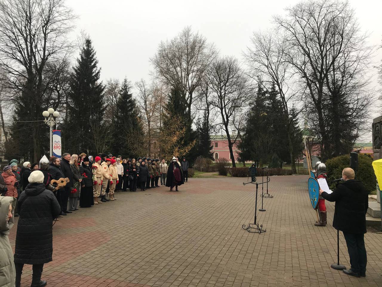 Перед собравшимися выступили председатель Тверской городской Думы Евгений Пичуев, заместитель главы администрации Твери Людмила Хоменко, благочинный I-го Тверского церковного округа протоиерей Павел Сорочинский, председатель Общества Михаила Ярославича Тверского, кандидат филологических наук Анжелика Янчевская и заместитель председателя военно-исторического клуба «Дружина», председатель МО ТРО РВИО в Твери Сергей Татти.