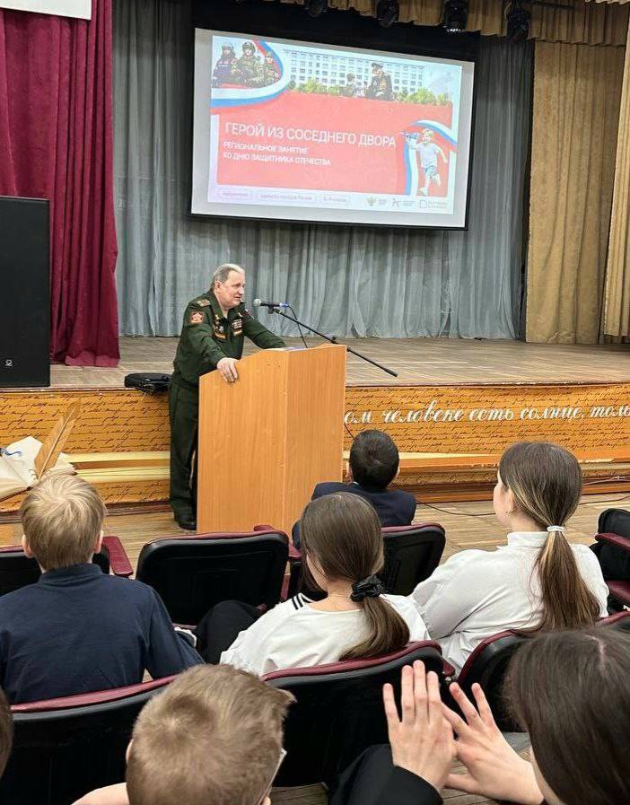 В рамках проекта "Разговоры о важном" была проведена встреча с 6-ми классами (5 классов) МОУ СОШ N 14, приуроченная к Дню Защитника Отечества по теме "Герой из соседнего двора".