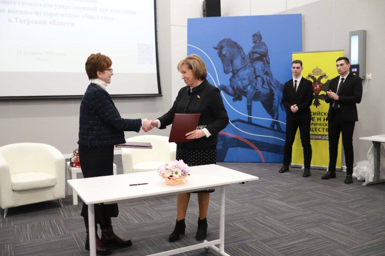 Соглашение подписали сенатор Российской Федерации, Заместитель председателя Комитета Совета Федерации по науке, образованию и культуре, Председатель Тверского регионального отделения Российского военно-исторического общества, доктор филологических наук, профессор Людмила Скаковская и Председатель Совета отделения Российского исторического общества в Тверской области, декан исторического факультета Тверского государственного университета, доктор исторических наук, профессор Татьяна Леонтьева.