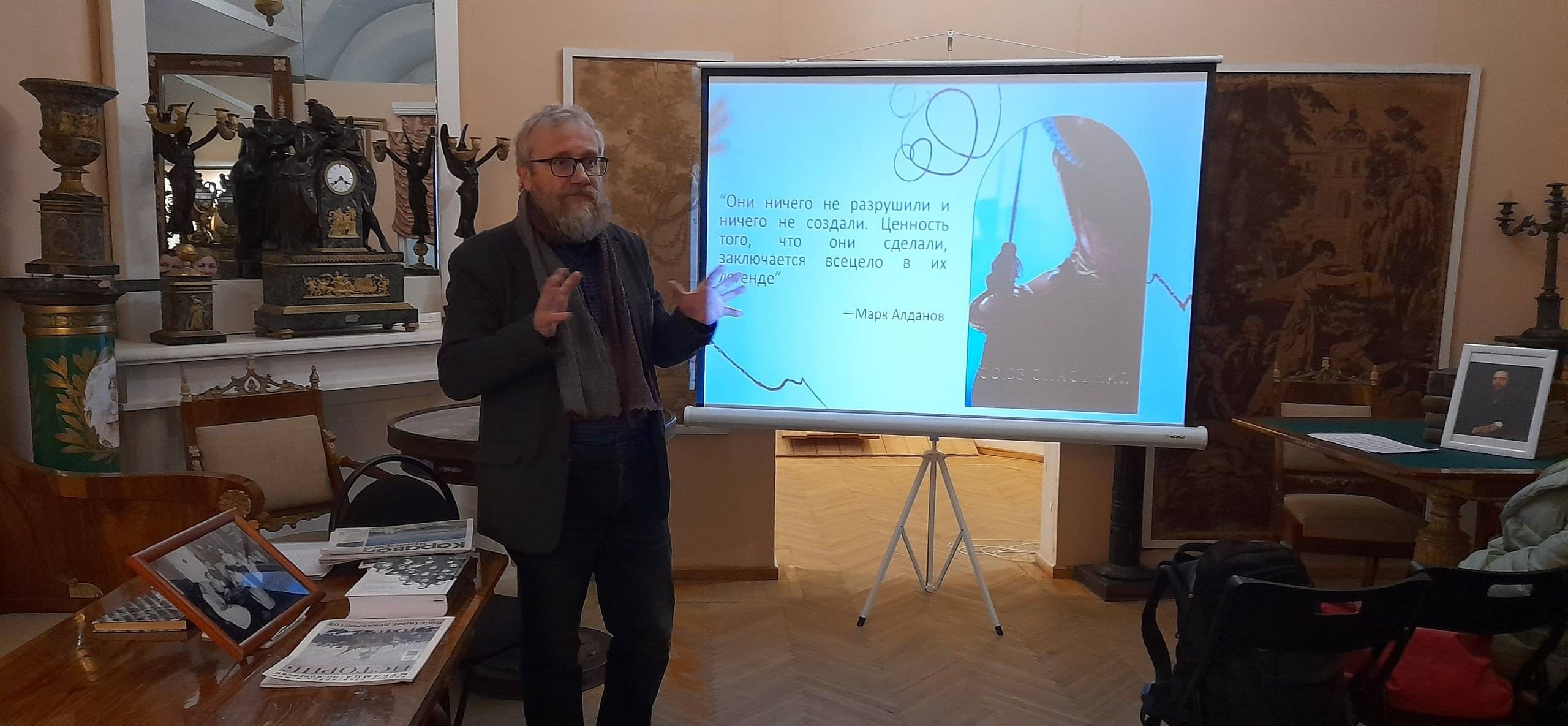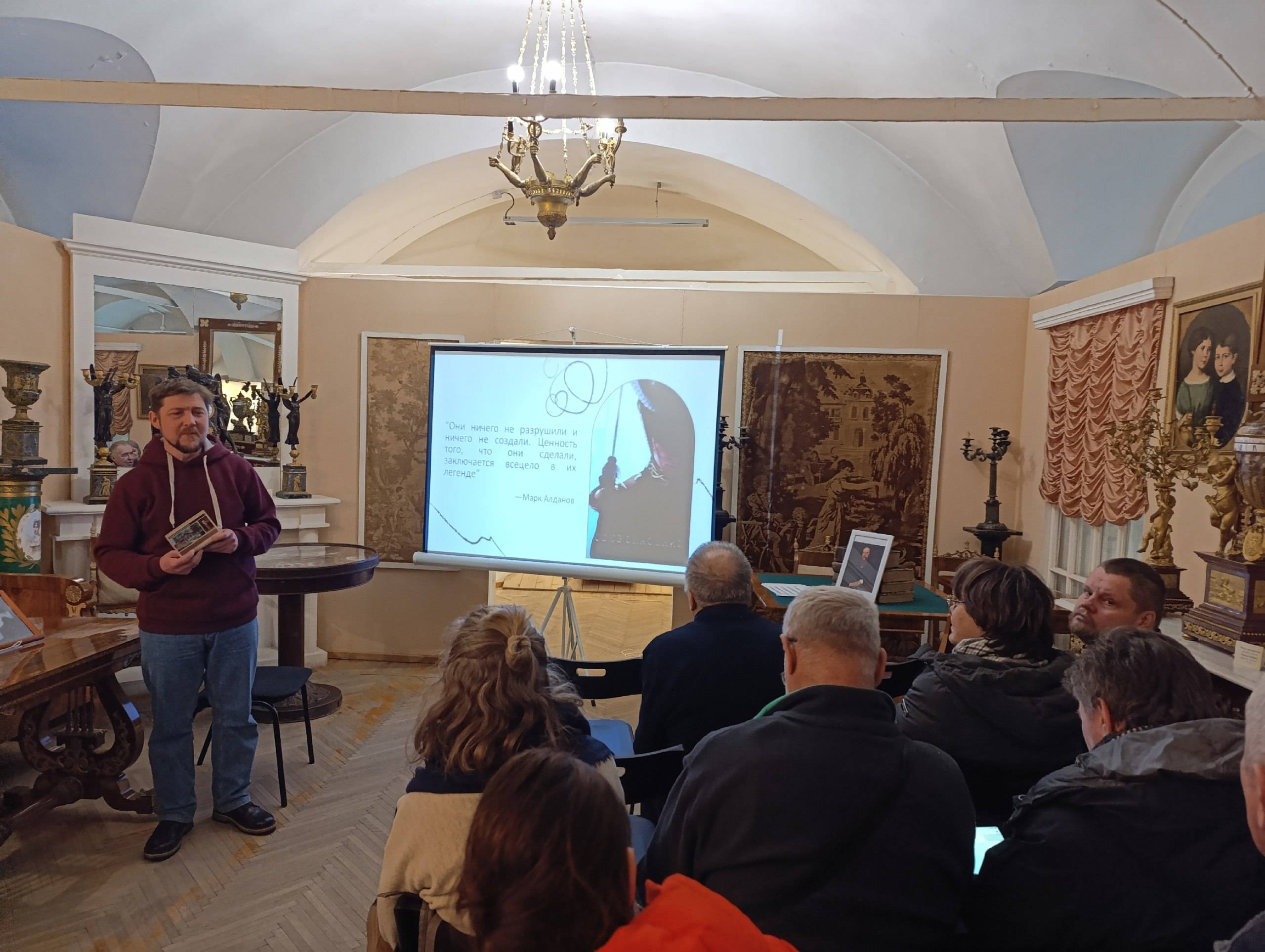Ярослав Викторович собирал коллекцию портретов на протяжении многих лет, он провёл увлекательную авторскую экскурсию, сопровождая её цитатами из произведений А.С. Пушкина, А. Одоевского, О. Мандельштама и других. Многие декабристы и сами занимались творчеством. К. Рылеев и А. Бестужев – Марлинский размышляли и писали о подвиге Михаила Тверского.