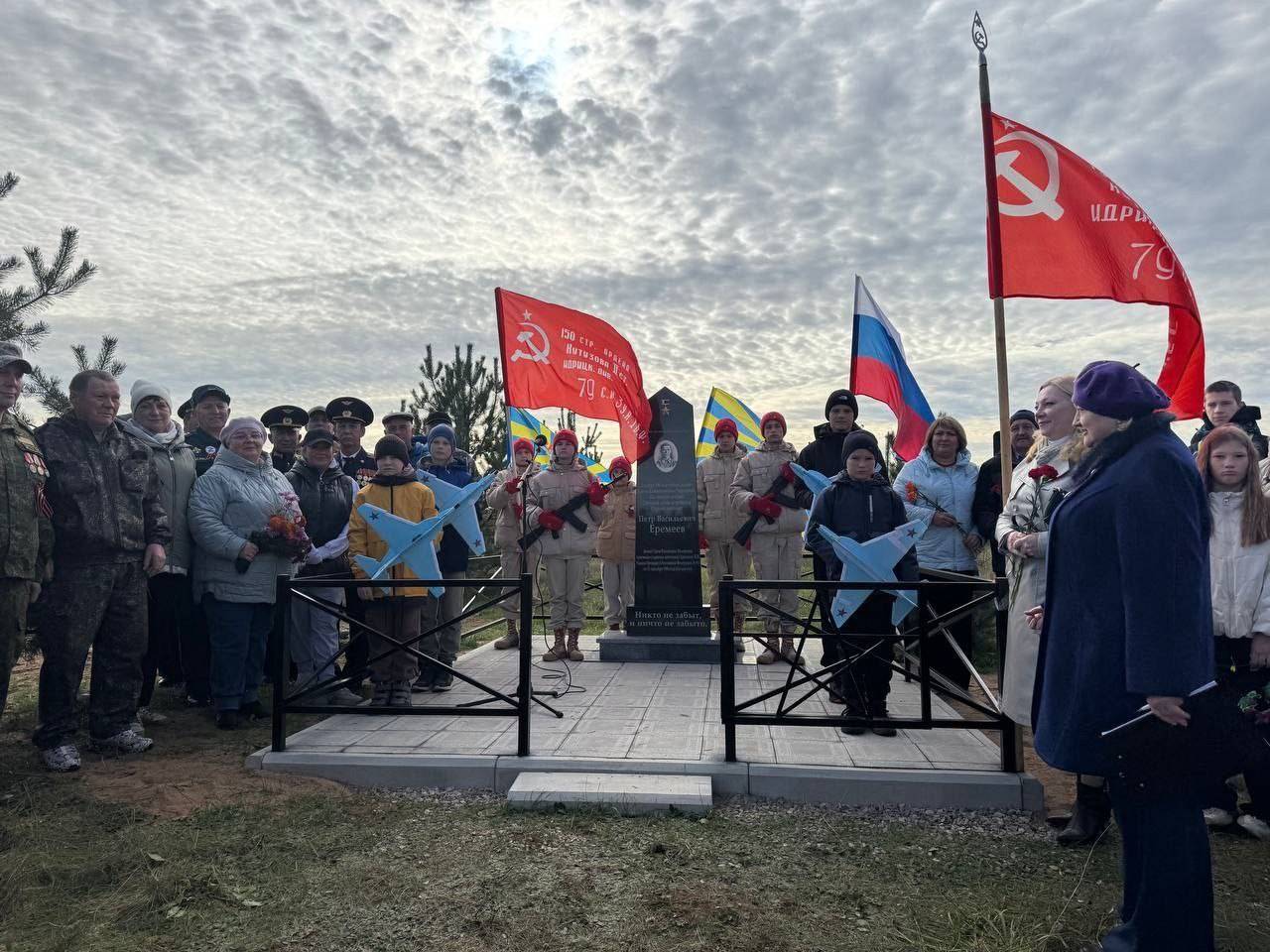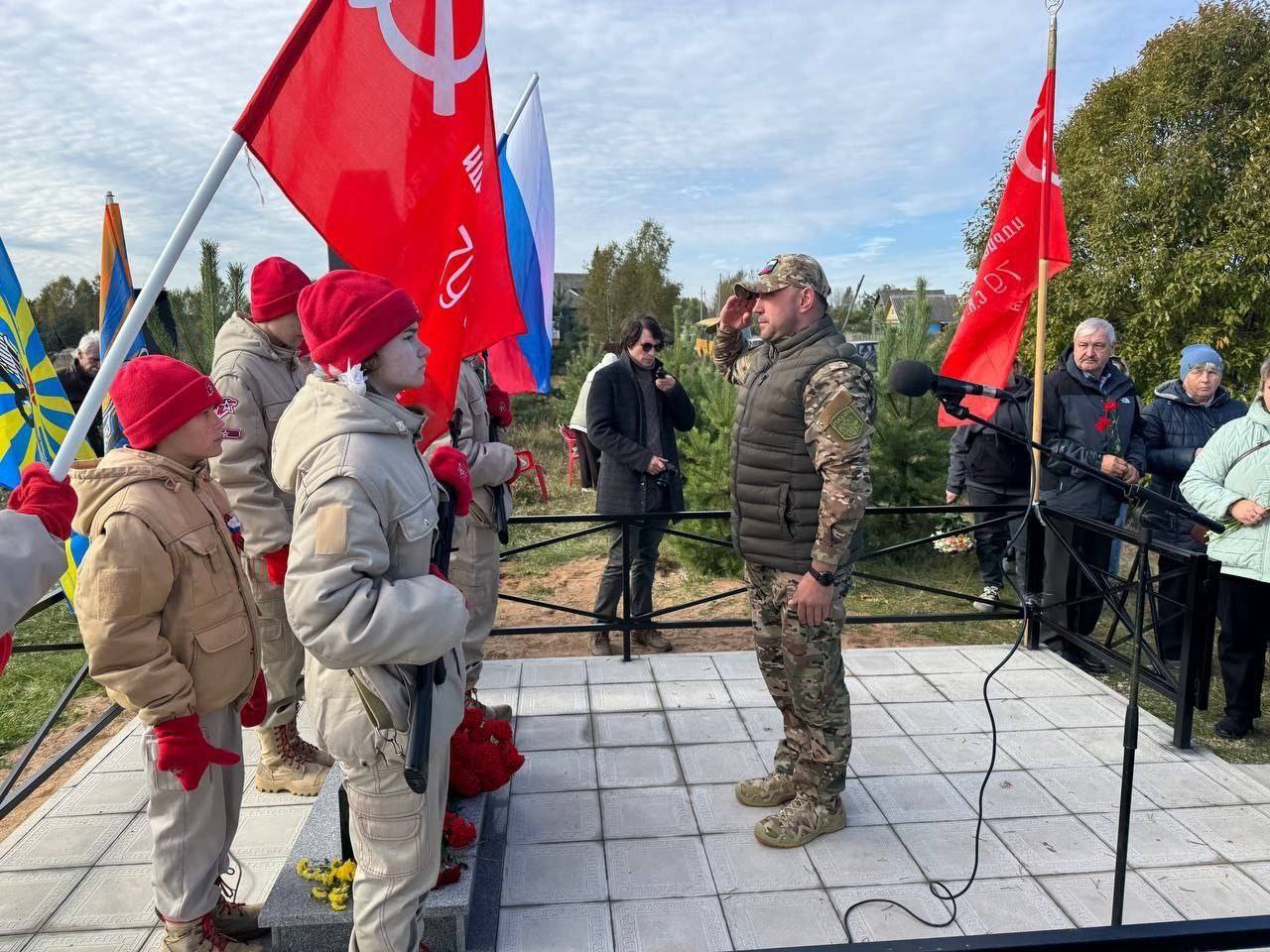 Как сообщили в УЦ «Наука Побеждать» (https://vk.com/nauka69), 2 октября в Осташкове состоялась церемония открытия памятника Советскому летчику, останки которого нашли в районе в апреле 2020 года. В мероприятии приняли участие представители общественных организаций, поисковых и волонтерских отрядов, местные жители, а также учредитель учебного центра «Наука побеждать» Илья Хорунжий.