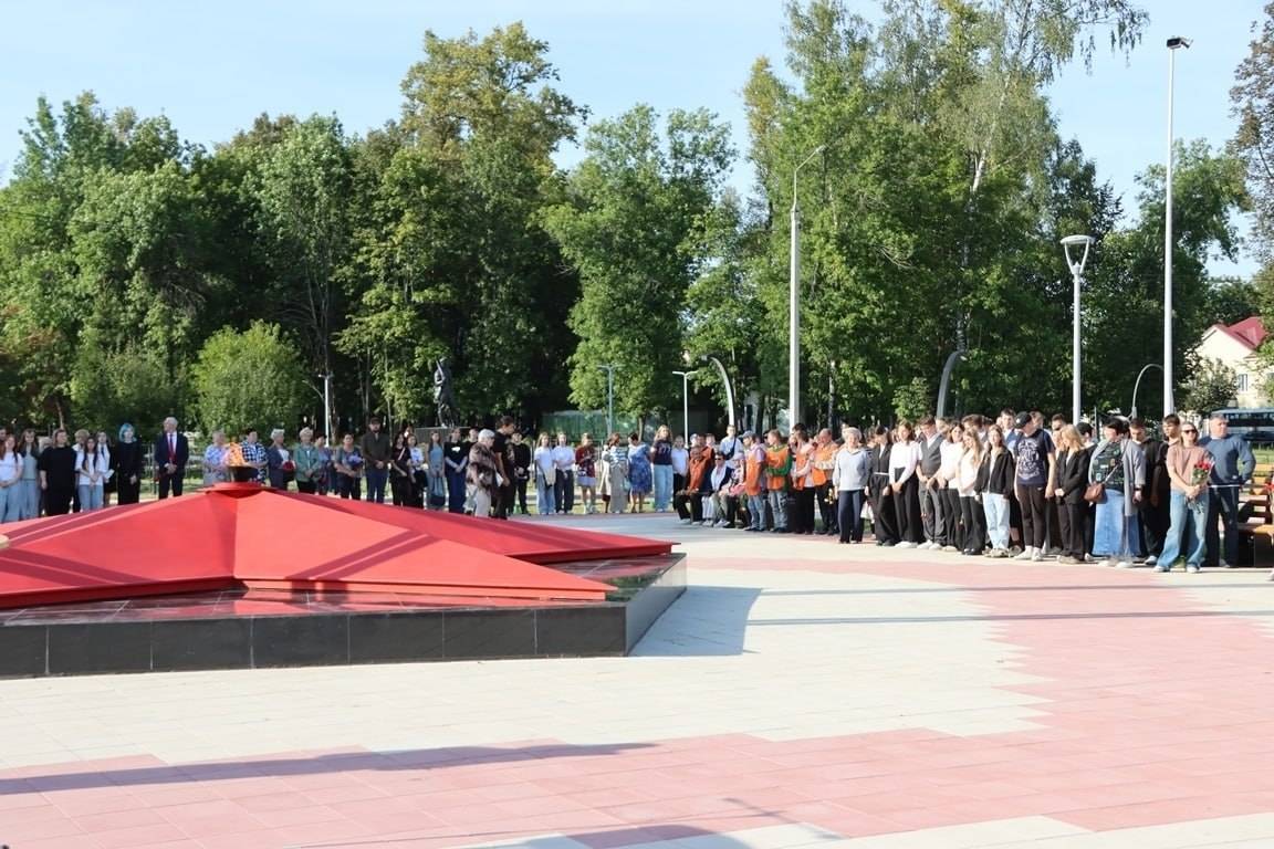 Светлую память воинов почтили минутой молчания. Были возложены цветы.