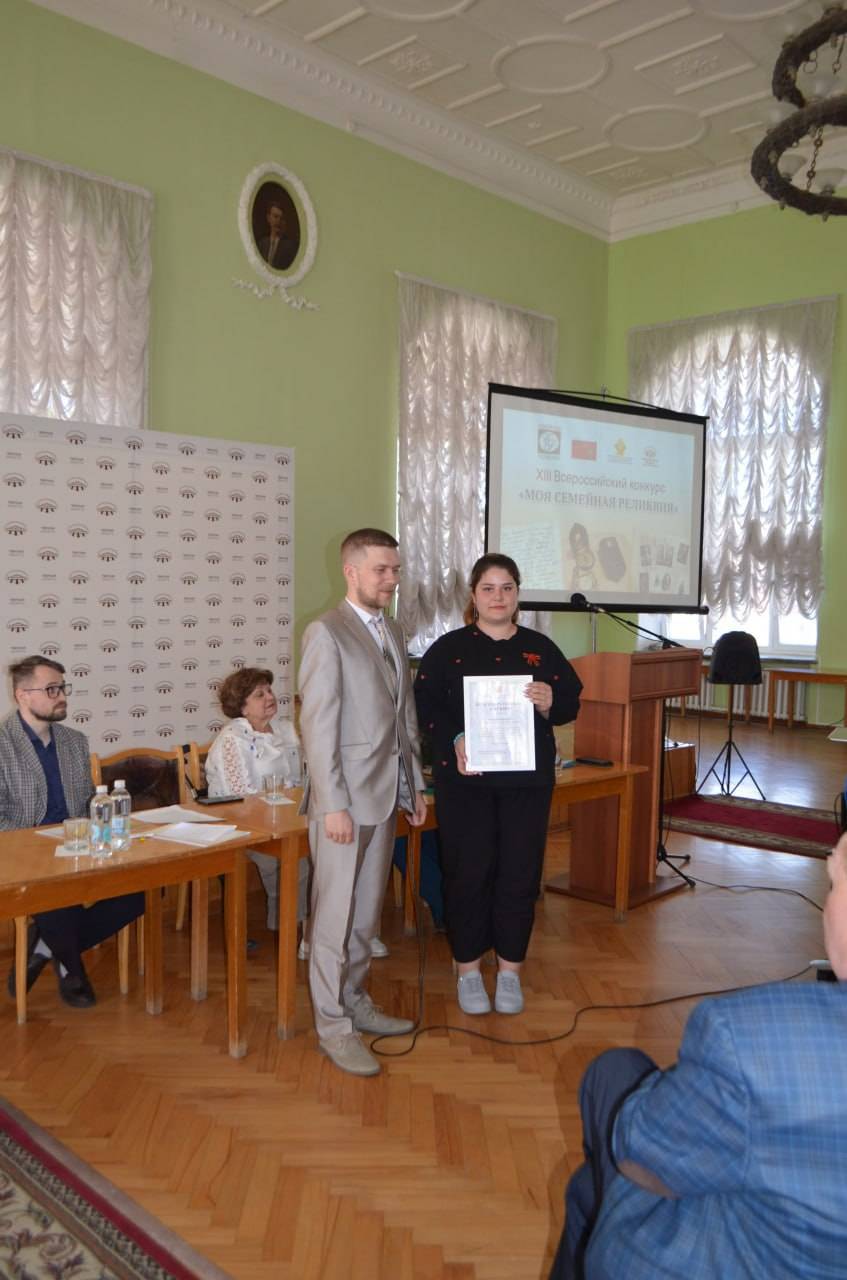 22 апреля в библиотеке им. Горького в Твери подвели итоги регионального этапа XIII Всероссийского конкурса творческих проектов учащихся, студентов и молодёжи «Моя семейная реликвия». Конкурс приурочили к 80-летию Победы в Великой Отечественной войне. По количеству участников второе место среди муниципалитетов заняло Западнодвинское МО.