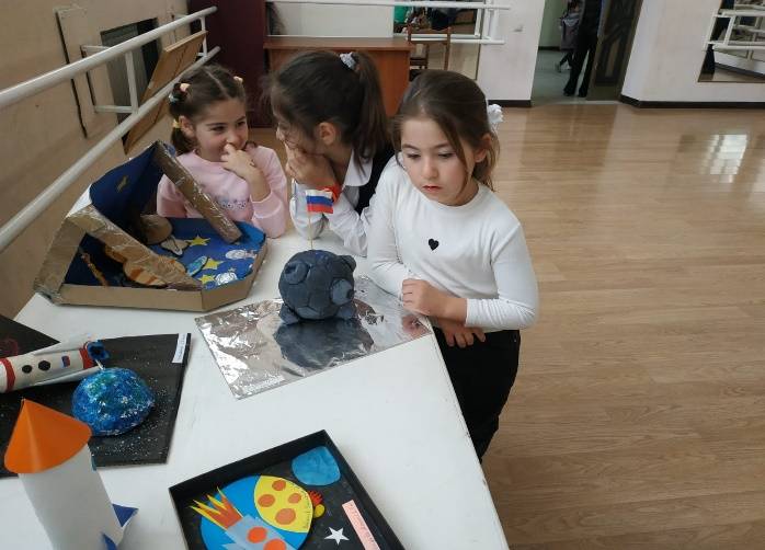 Во Дворце культуры им.Дышековой К.Х. г.п.Чегем состоялась выставка рисунков, подделок, выполненные руками детей, посвященные космосу.