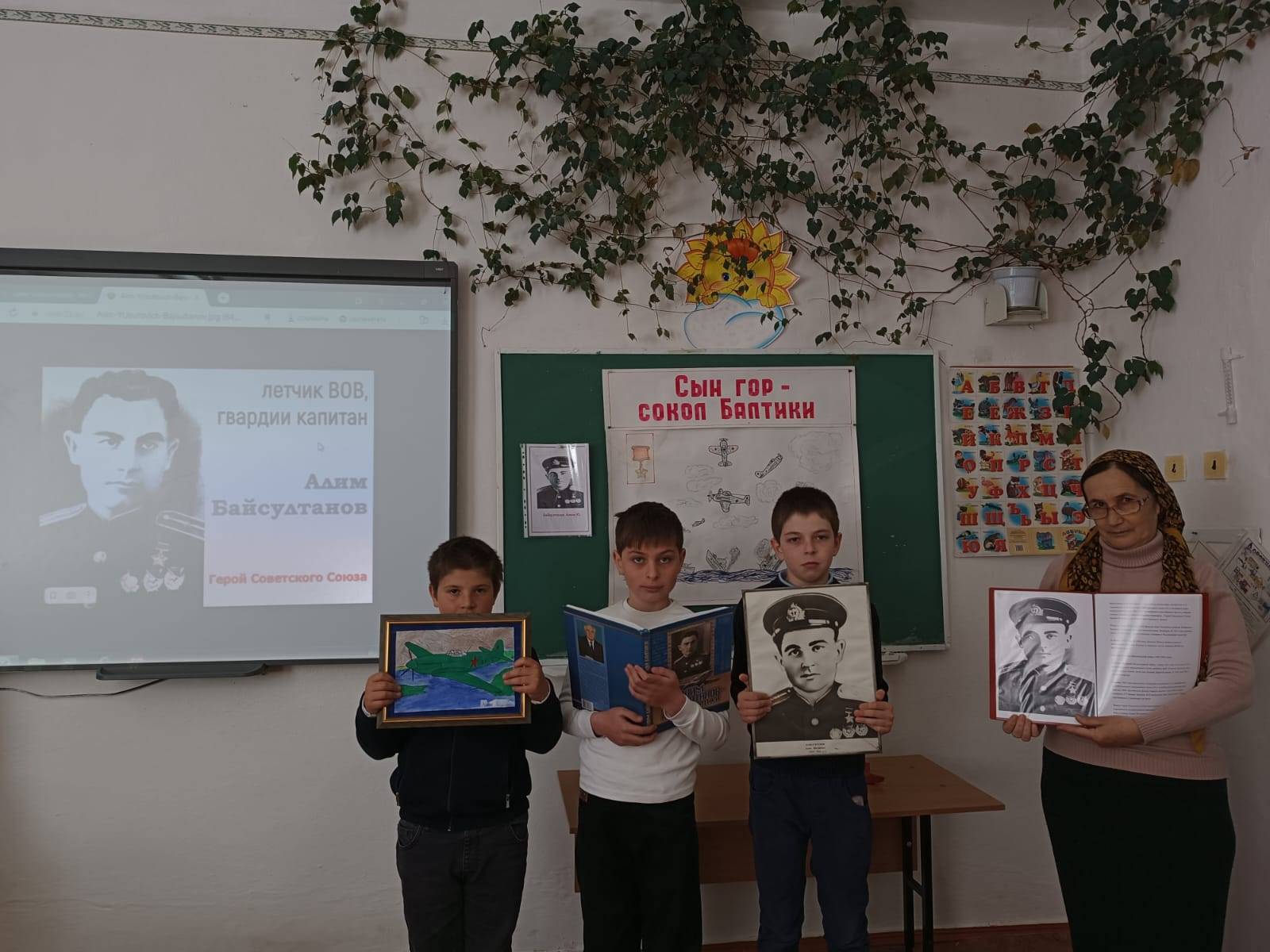 К 105-летию со дня рождения лётчика – истребителя, Героя Советского Союза Алима Юсуфовича Байсултанова, в МКОУ СОШ с. Булунгу с учащимися 2 – 5 классов