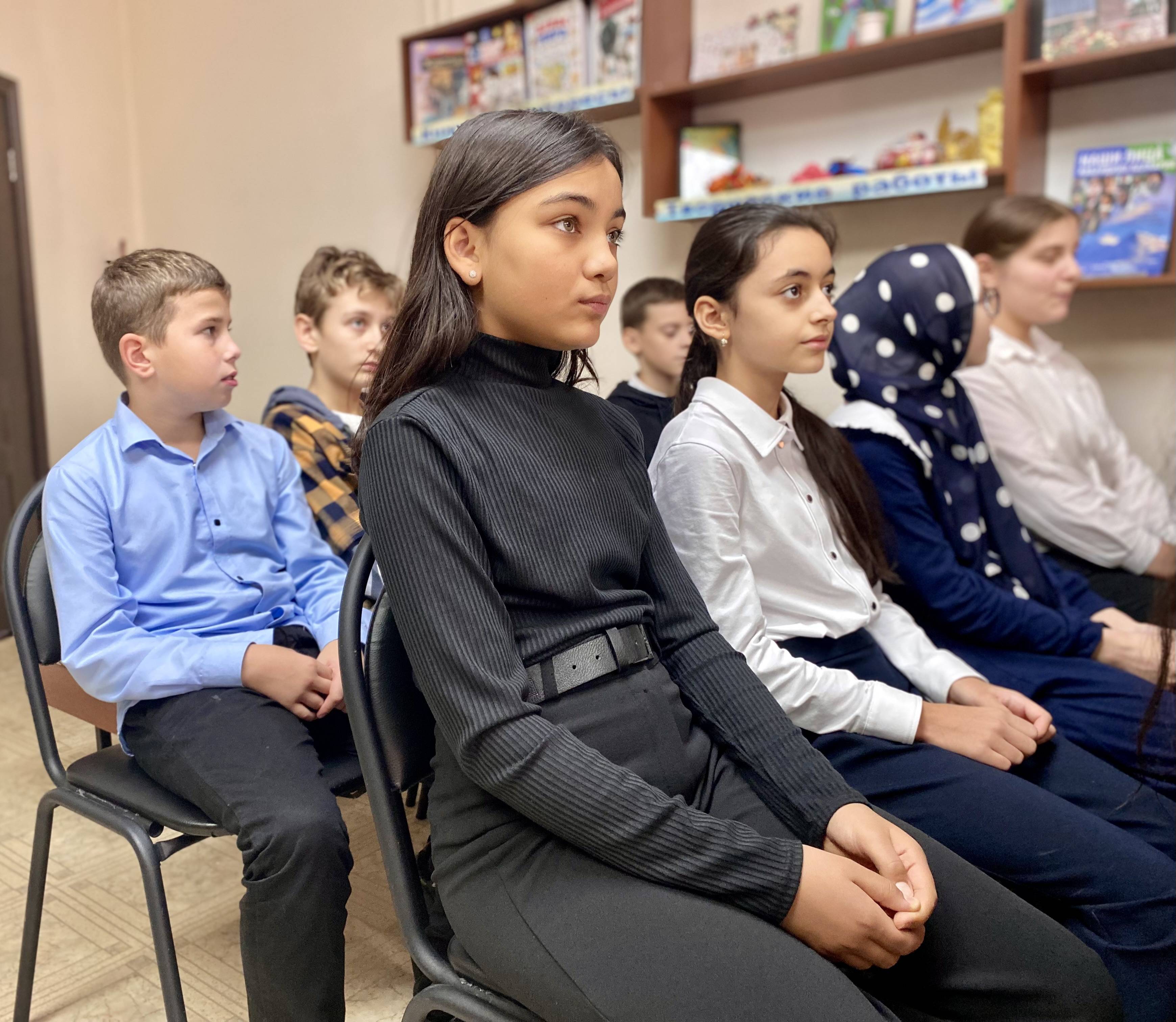присутствовали учащиеся 6 класса МКОУ «Гимназия № 29». Специалисты библиотеки подготовили рассказ о том, кто такие адыги, что такое адыгский
