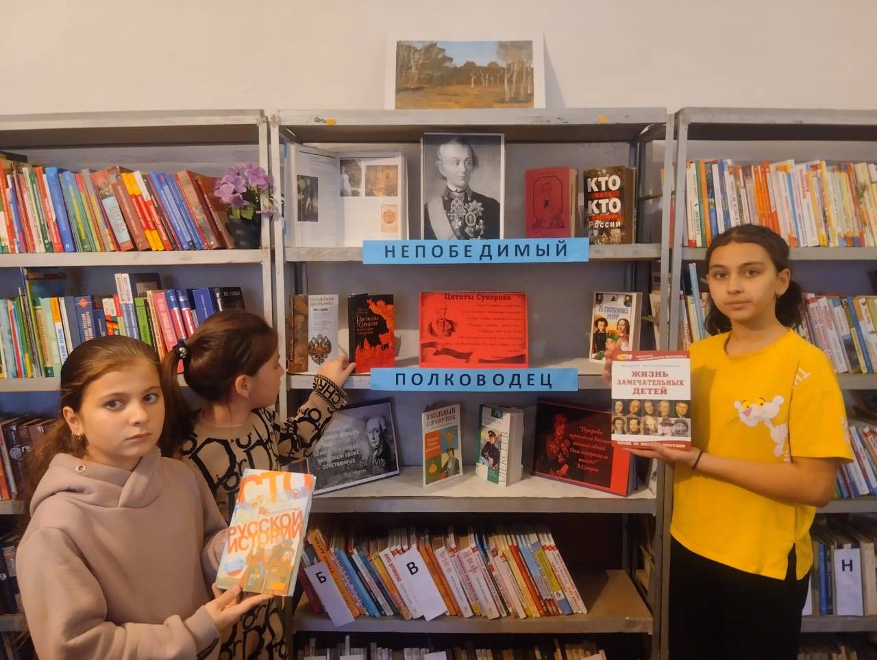 Юных читателей познакомили с биографией полководца, с его боевыми достижениями, с литературой, представленной на книжной выставке «Непобедимый полководец». Были прочитаны отрывки из книги Сергея Алексеева «Рассказы о Суворове».