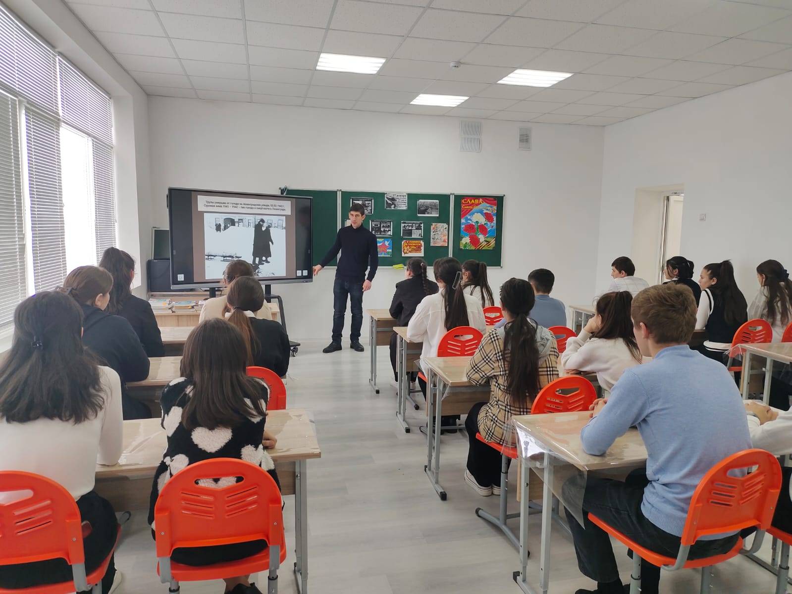 27 Января 2024г. в 8 "Б" и 9"Б" классах МКОУ СОШ №2 с.п Кахун проведен Урок Мужества "Жизнь в блокадном Ленинграде".