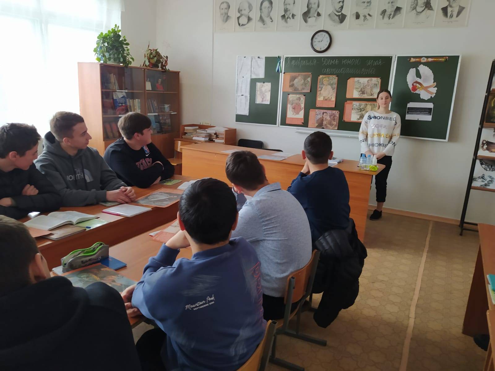 Учащиеся 9 "а" класса подготовили презентации о юных героях – антифашистах. Они рассказали о подвиге и доблести Зины Портновой, Марата Казея и Лёны Голикова. «Орлята» бесстрашно и гордо шагнули в зарево войны. Ребята рассказали также про юных отважных героях из Кабардино – Балкарии. Шура Козуб сражалась в партизанском отряде, Петя Хромеев и Миша Ревякин, перерезали уже подожжённый шнур и спасли здание пединститута от взрыва, за что были награждены медалями.