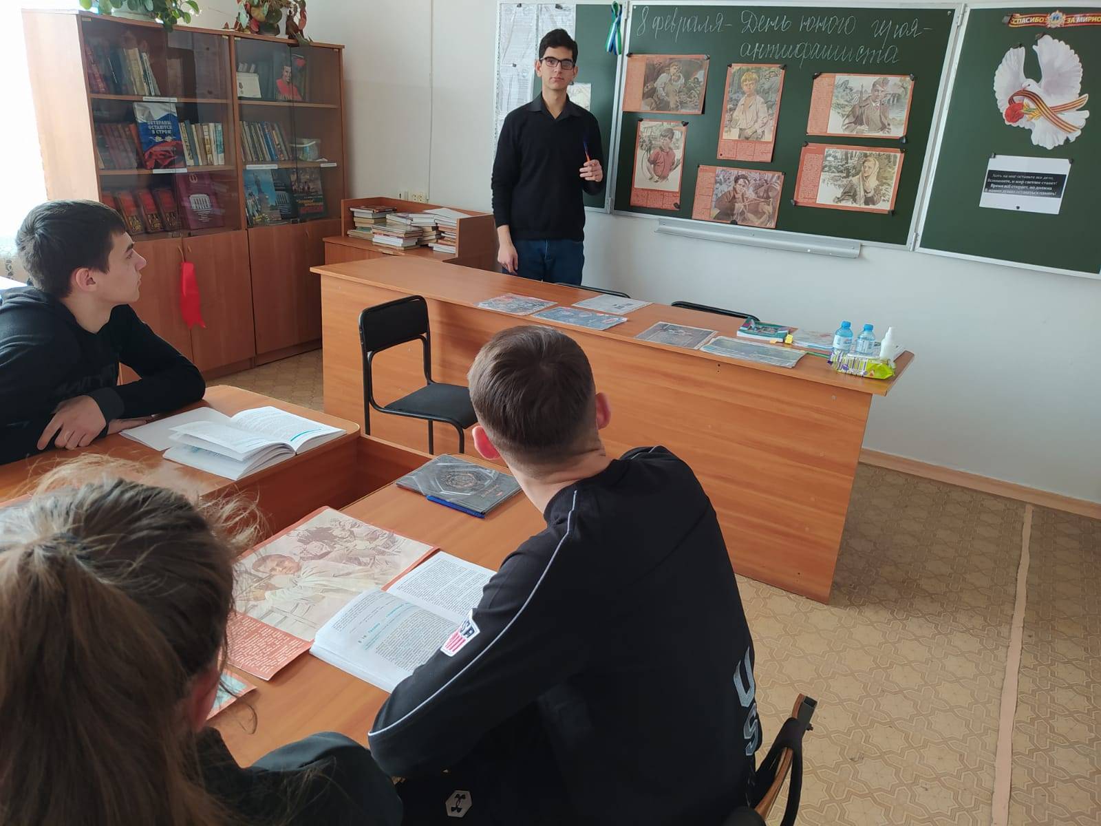 Во вступительном слове учитель Шибзухова Х.Х рассказала об истории дня памяти юного героя антифашиста. Они жили в разных странах, но совершили один и тот же подвиг- боролись за освобождение земли.
