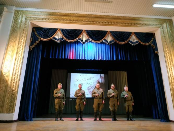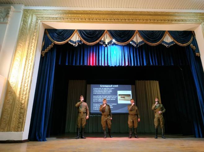 Ведущие вечера рассказывали об ужасах той блокады, исполнялись тематические песни вокальной группой народного ансамбля «Чегемские водопады», все это сопровождалось показом документального фильма.