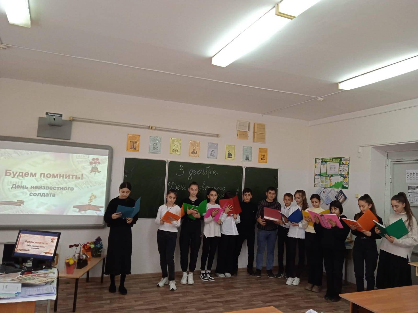 Мероприятие, посвященное Дню Неизвестного солдата, проводилось в МКОУ СОШ с.п. Псыкод классным руководителем 7 «А» класса Тхагалеговой Марьяной Анатольевной.